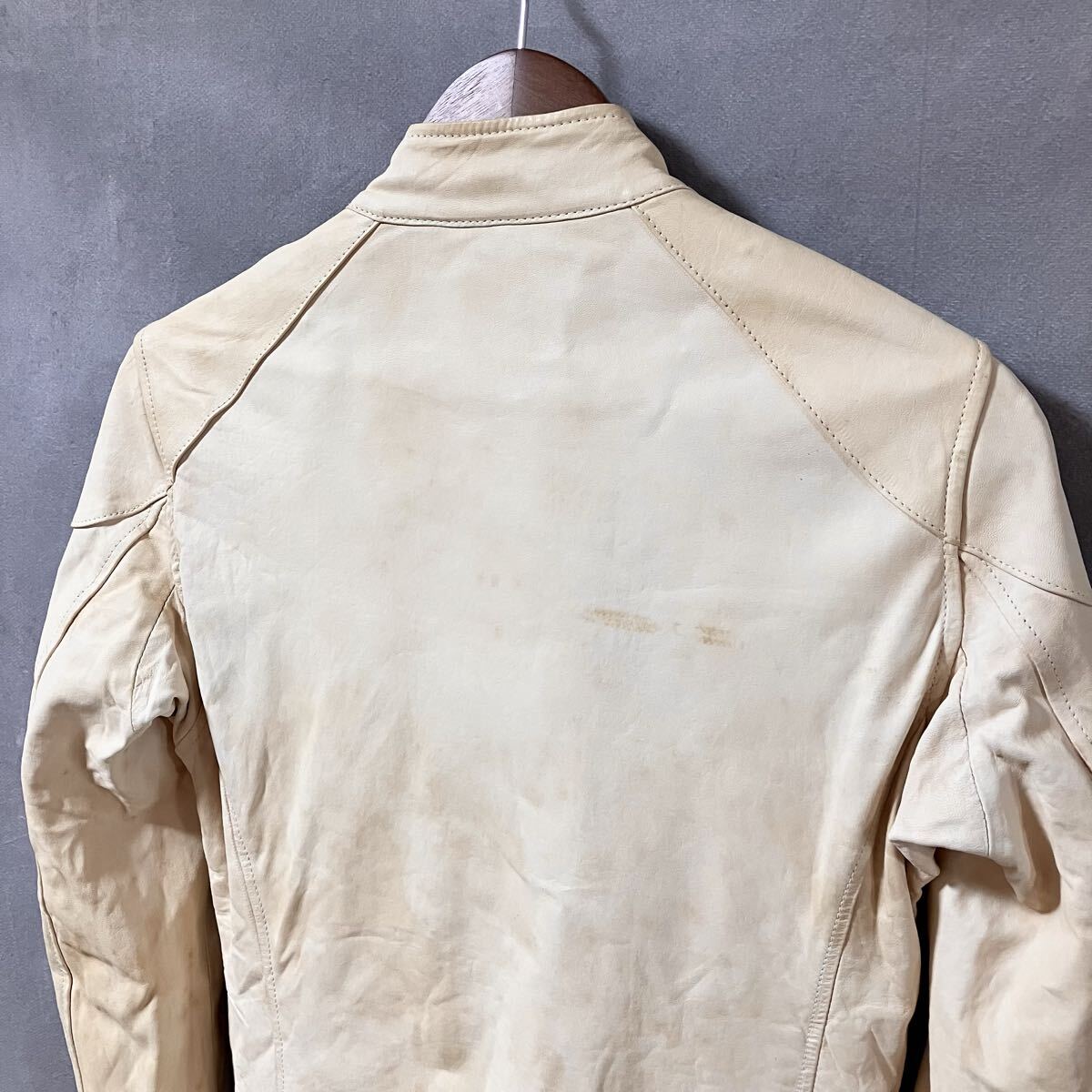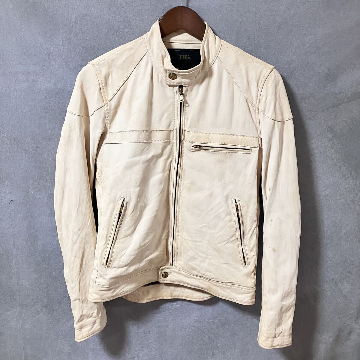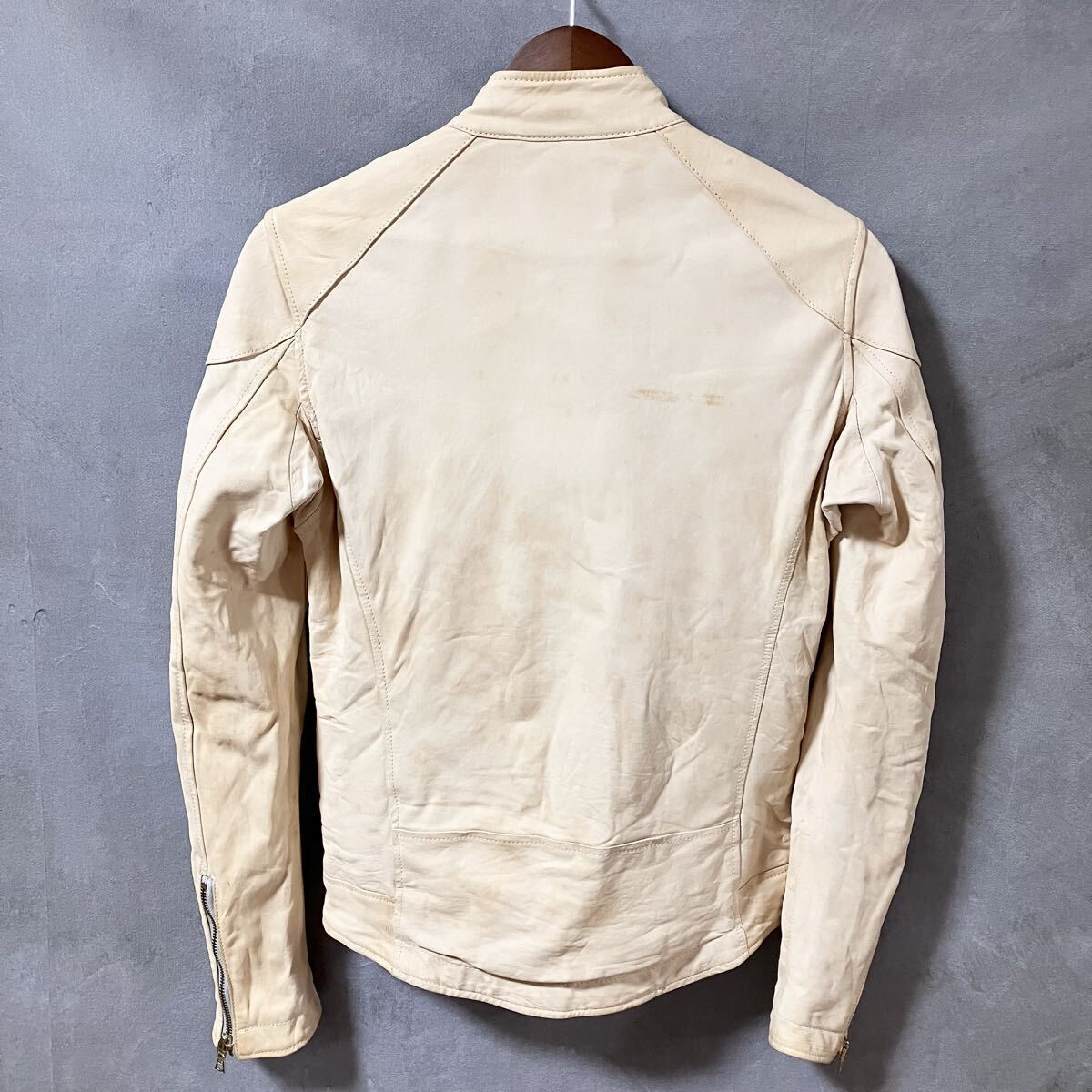 商品名:【難あり】HG HYSTERIC GLAMOUR ヒステリックグラマー 羊革 ヌメ革 ラムレザー シングル ライダース ジャケット size.S ベージュ 4LB-1551