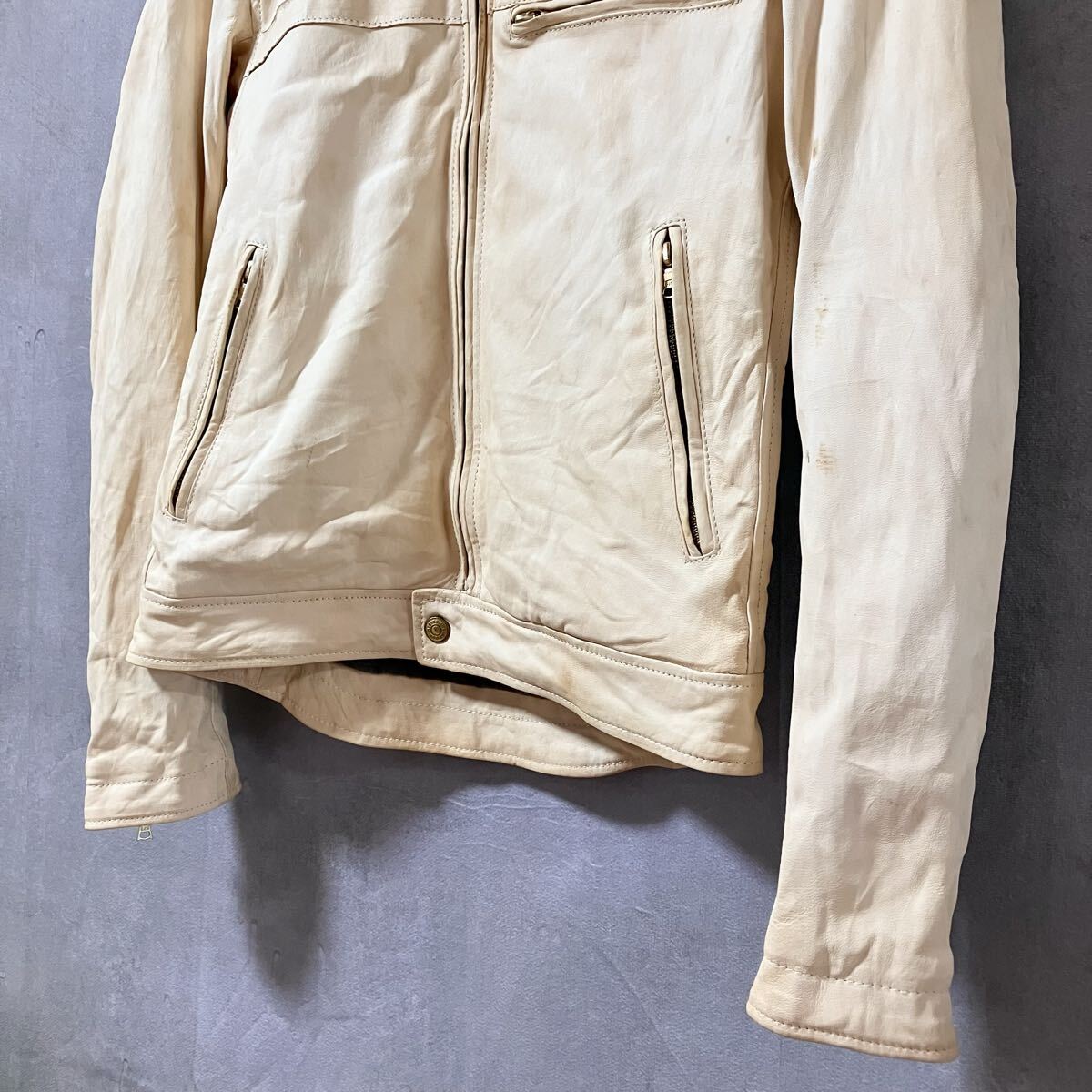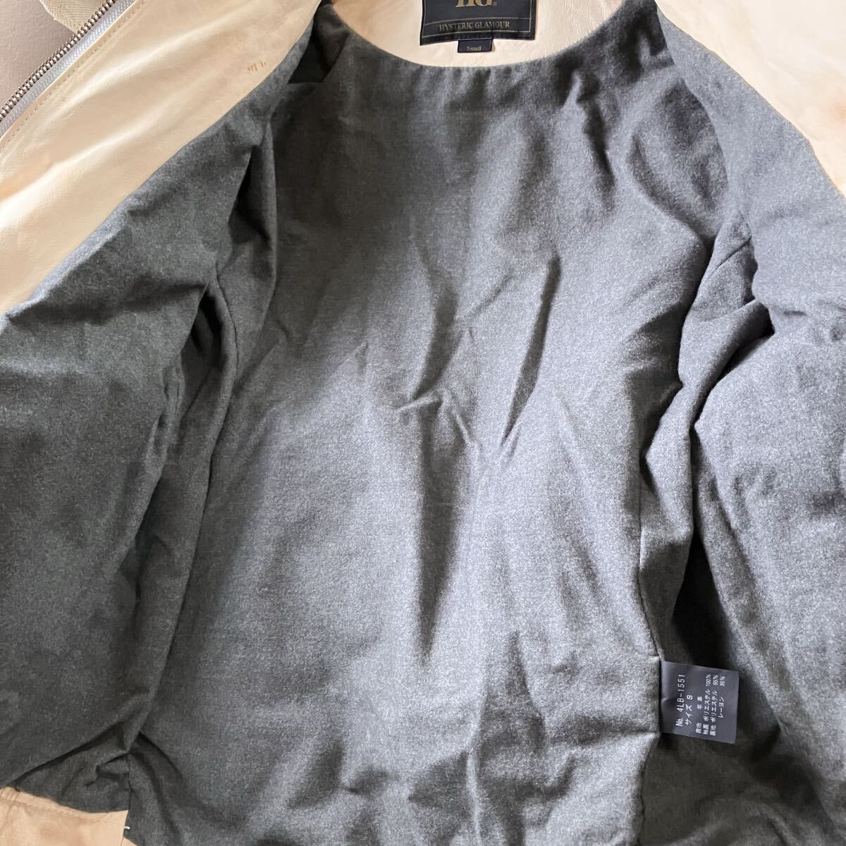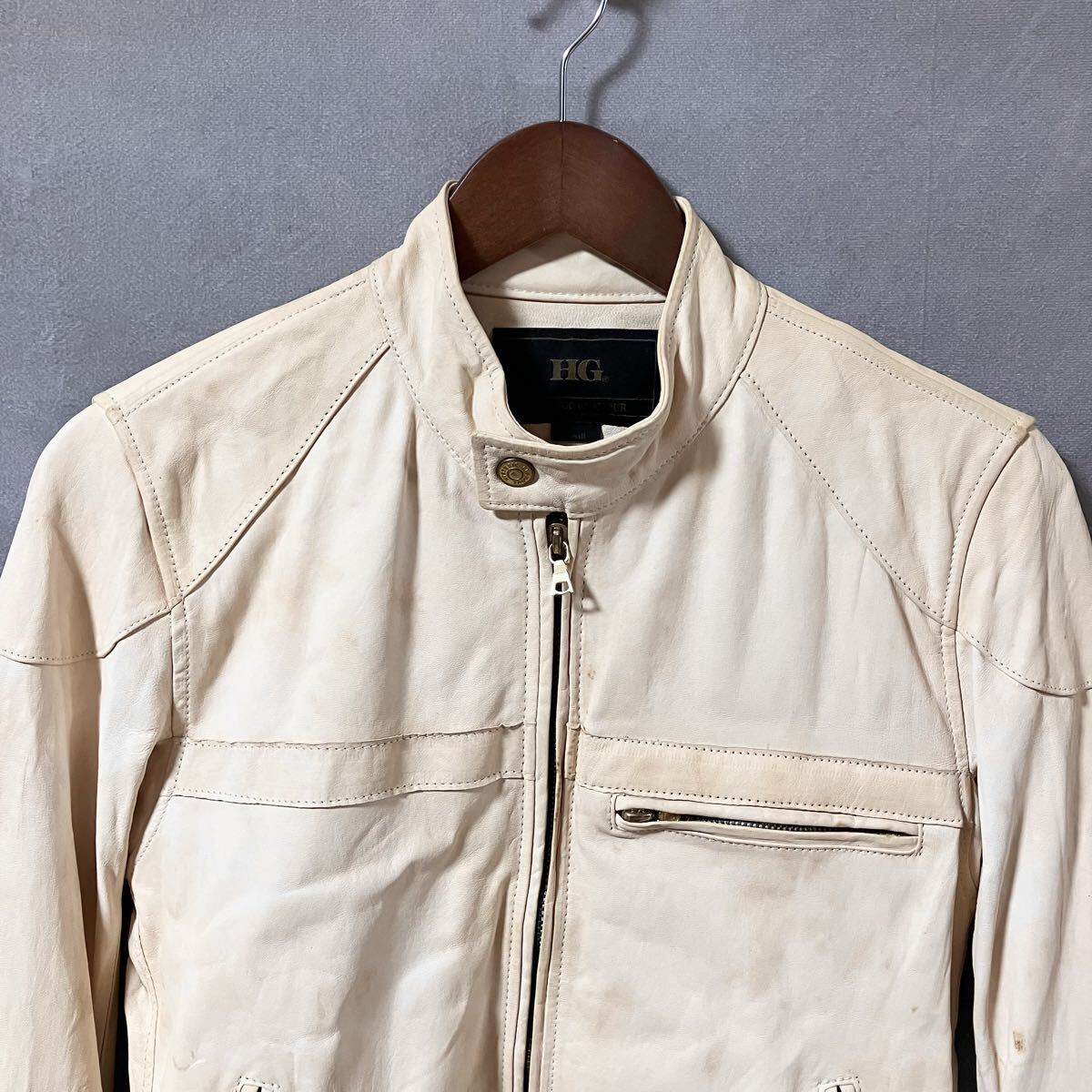 商品名:【難あり】HG HYSTERIC GLAMOUR ヒステリックグラマー 羊革 ヌメ革 ラムレザー シングル ライダース ジャケット size.S ベージュ 4LB-1551