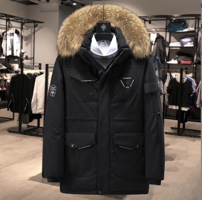 新入荷ブラック 新品DCKMANY ダウンジャケット ミドル ファー付き 撥水 暖かい 防風 防寒 厚手 冬 ノーアイロン アウター メンズ