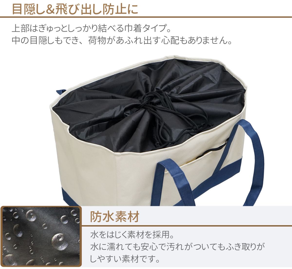 サイズ | 高さ 27cm / 横幅 40cm / 上部奥行 27cm /下部奥行23cm 持ち手部分 高さ30cm (※長さ75cm) |