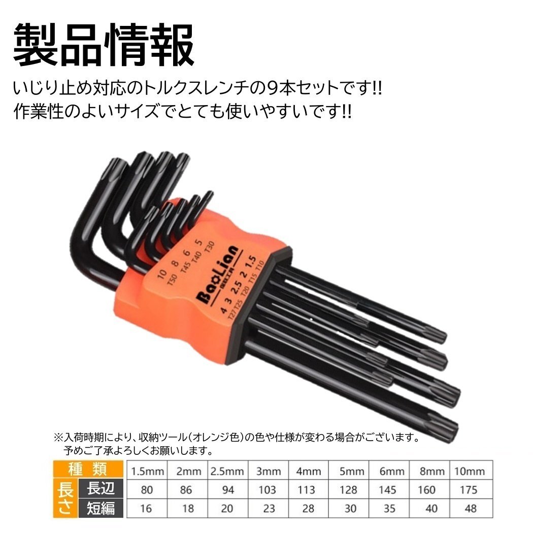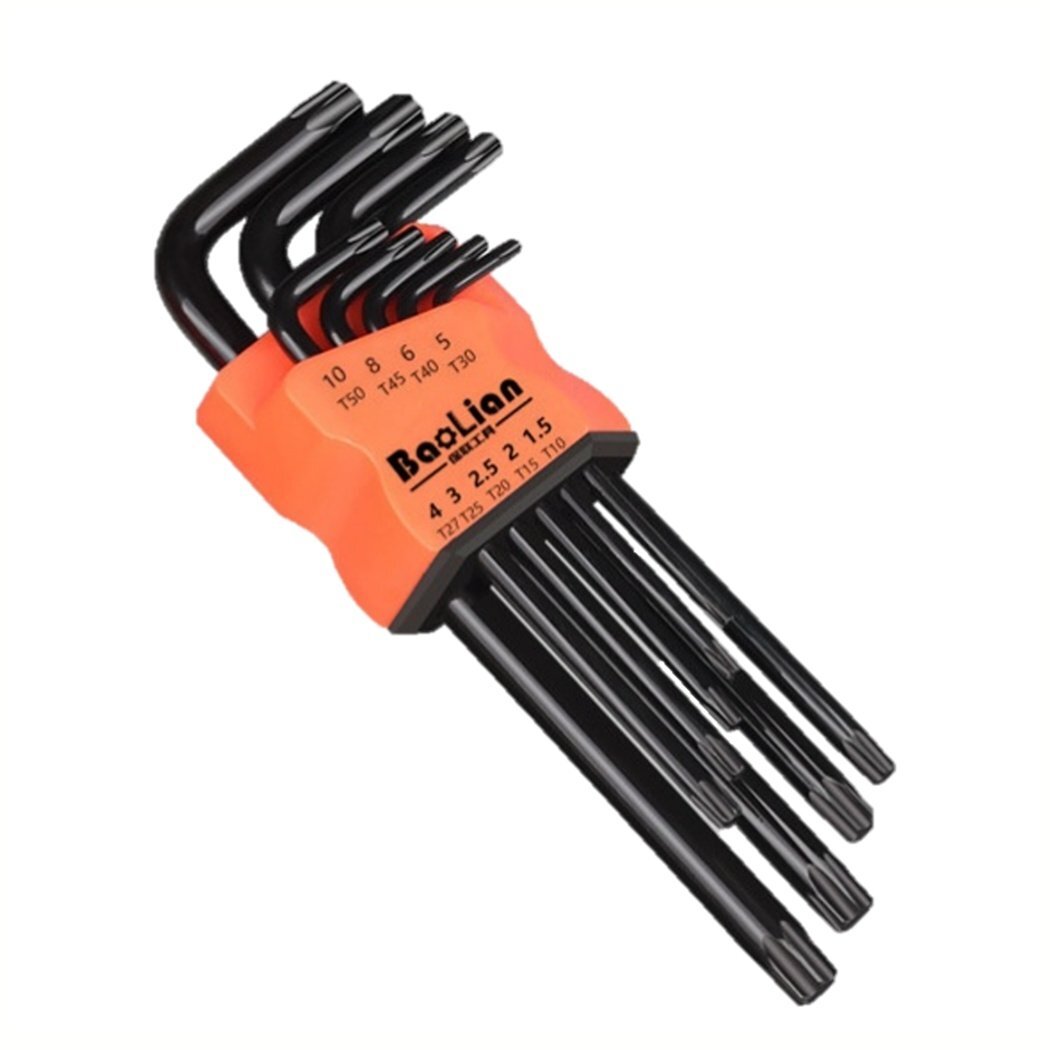トルクスキーレンチ 9本組 ロングタイプ 星型 T50/T45/T40/T30/T27/T25/T20/T15/T10 トルクスレンチ いじり止め トルクス