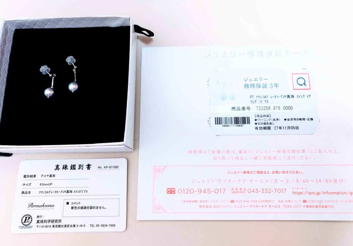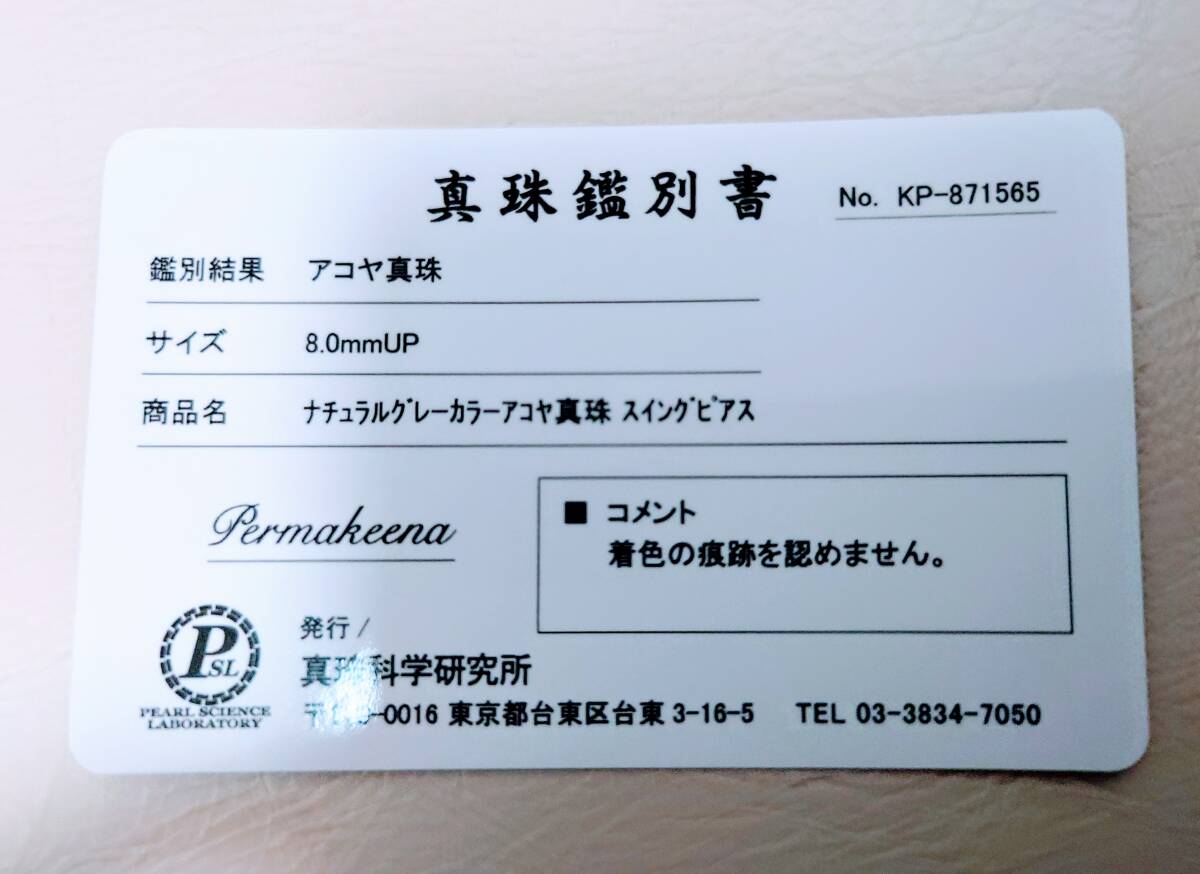 ペルマキーナ アコヤ真珠 ナチュラルグレーカラー PTスイングピアス