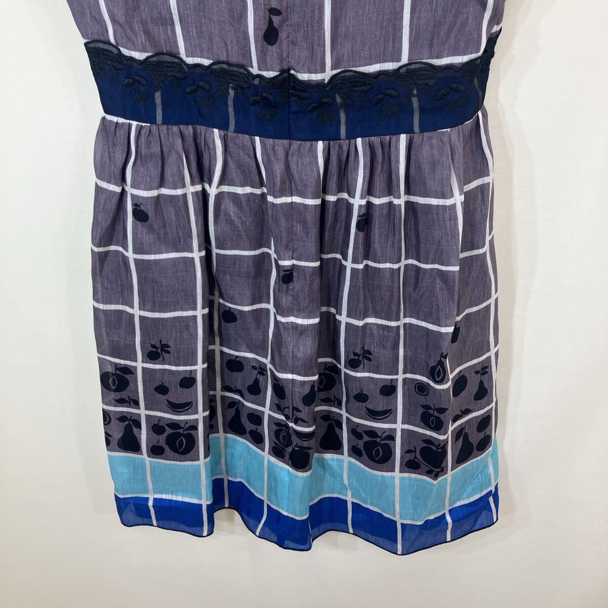 ANNA SUI アナスイ ladies レディース ドレス ワンピース リネン 麻 シルク 刺繍 リンゴ ラフランス さくらんぼ アメリカ製 made in usa ノースリーブ