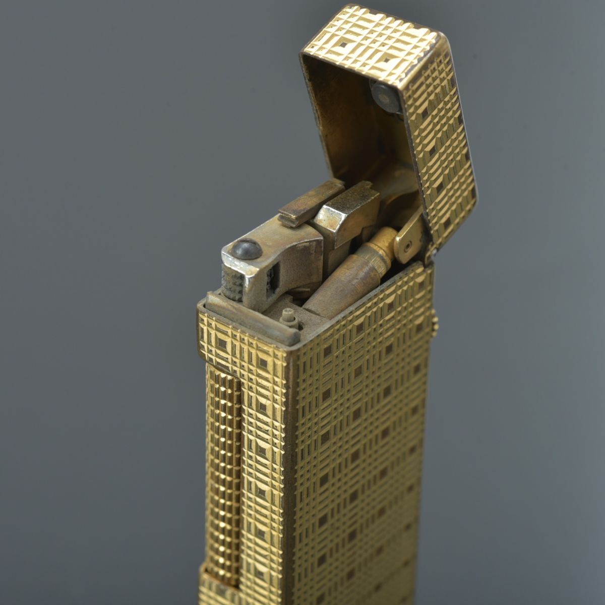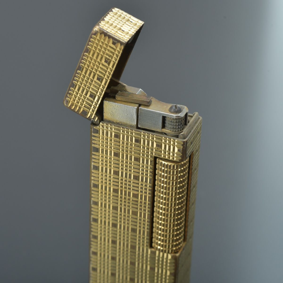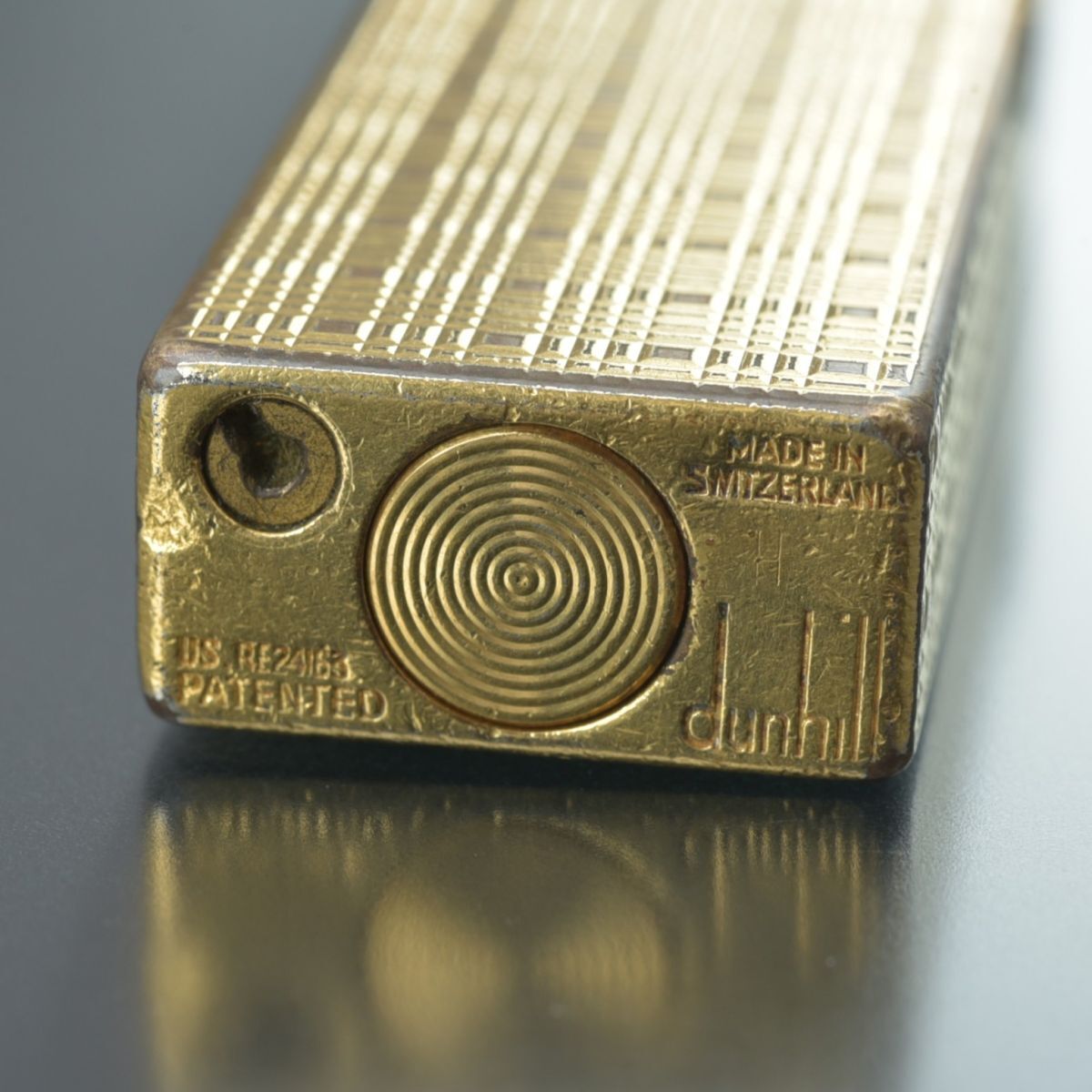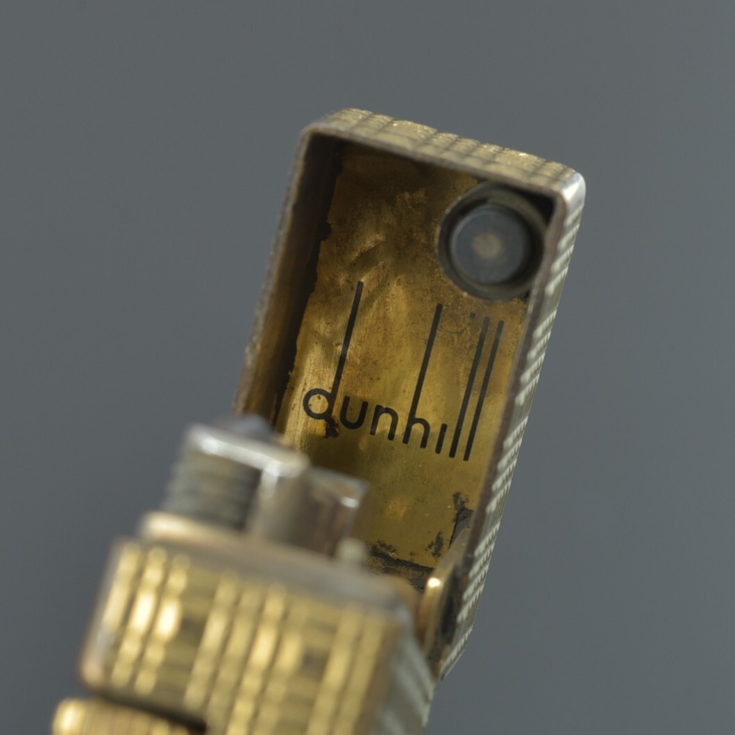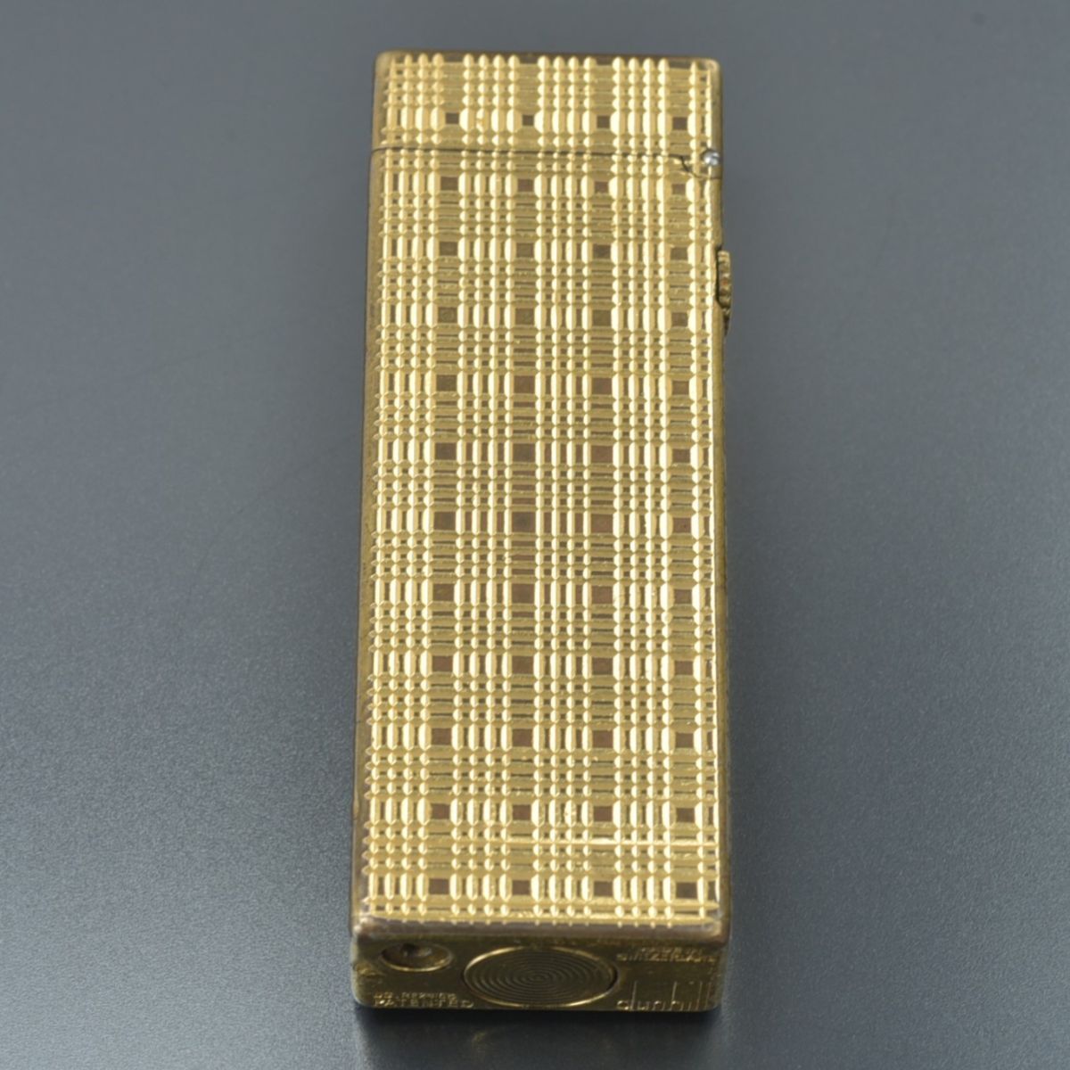 良品 ダンヒル dunhill ガスライター ローラー式 ゴールド 火花確認済 チェック柄