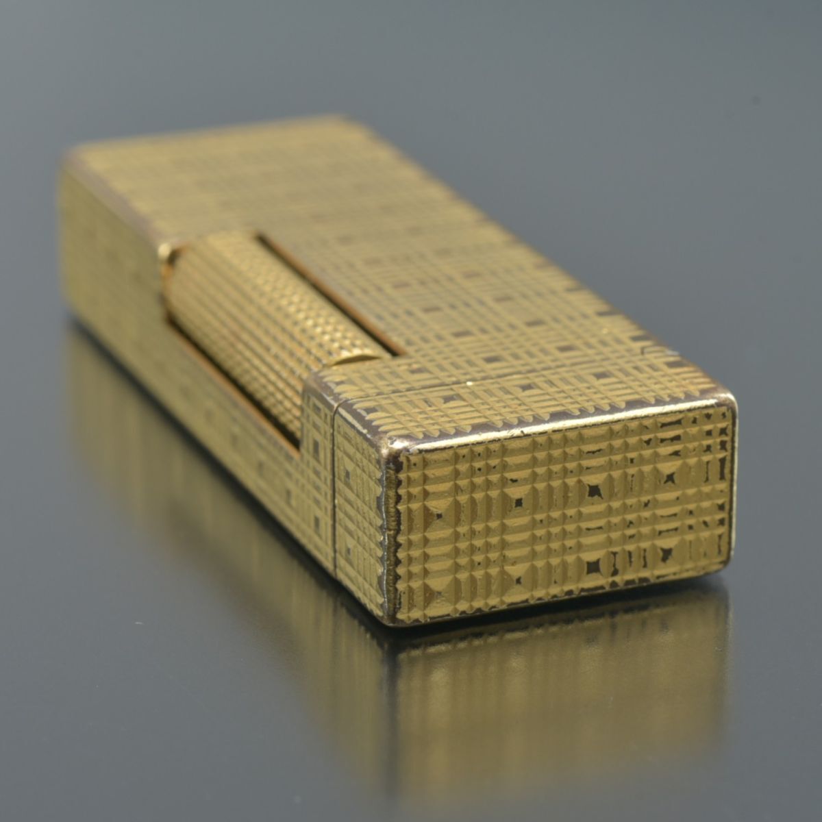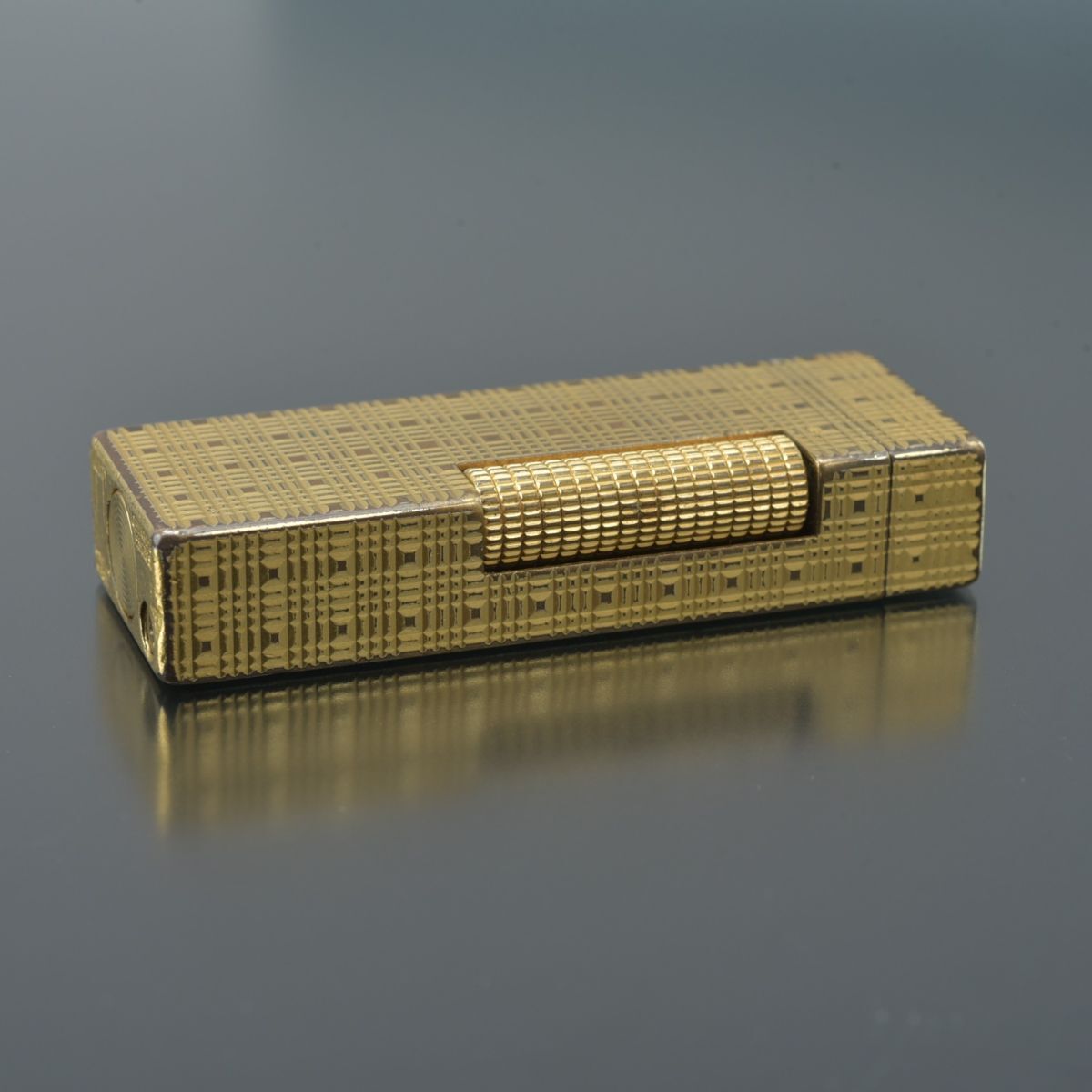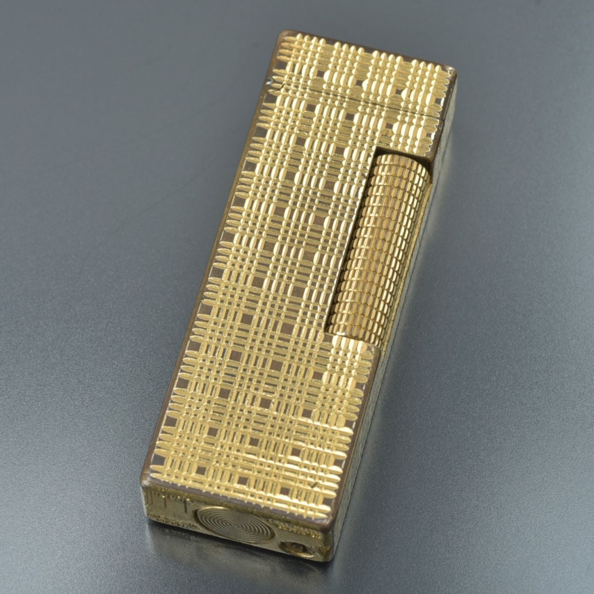 良品 ダンヒル dunhill ガスライター ローラー式 ゴールド 火花確認済 チェック柄 ローラライト ブランド 喫煙具 #N※0918-16/TLk.h