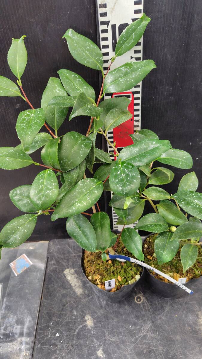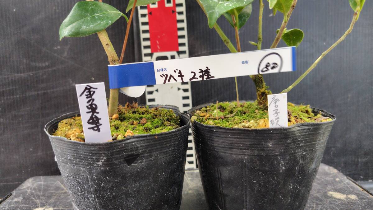 他方10.5㎝ポットに唐子咲き ツバキ 赤花