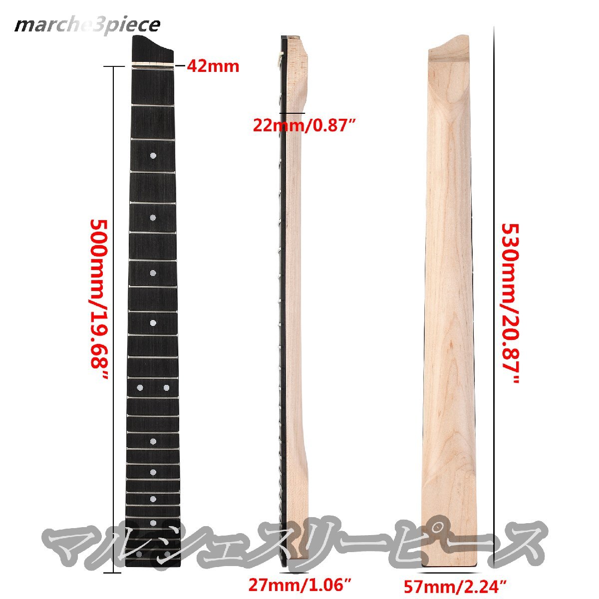 【マット仕上げ】25フレット ヘッドレスギターネックローズウッド指板/メイプルネック6弦トラベルギター用