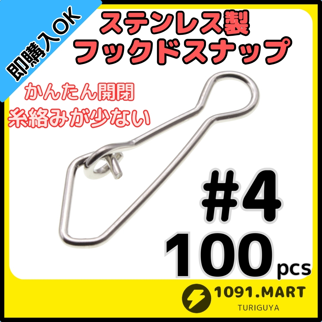 【送料無料】ステンレス製 フックドスナップ #4 100個セット インタースナップ ルアー釣り エギング かんたん開閉 すり抜け抜群!