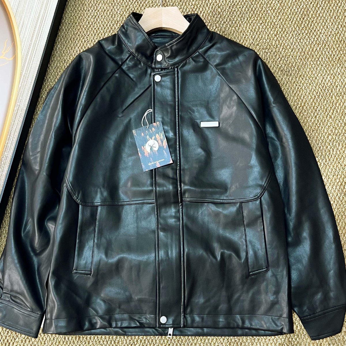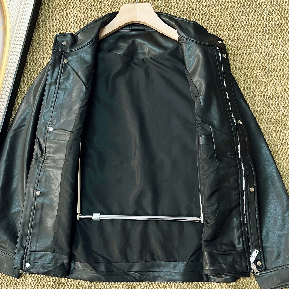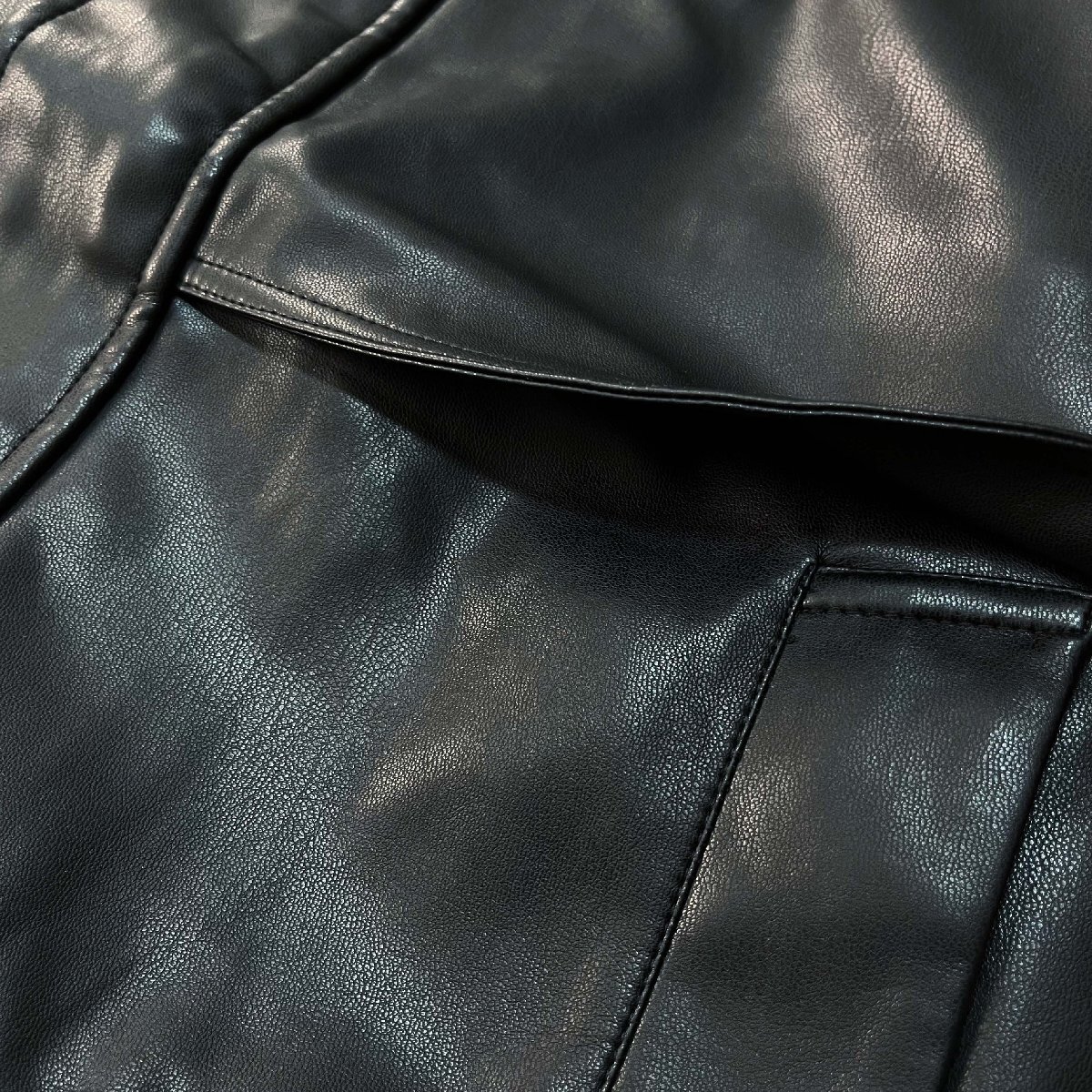 レザージャケット カナダ製造 光沢 滑らか PUレザー カッコイイ アウター ライダース 革ジャン バイク用 ストリート カジュアル SIZE:L