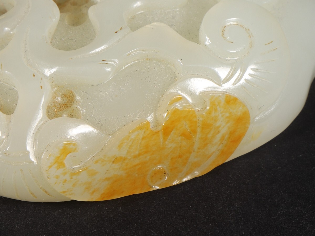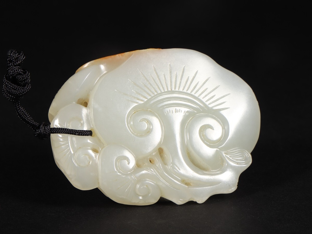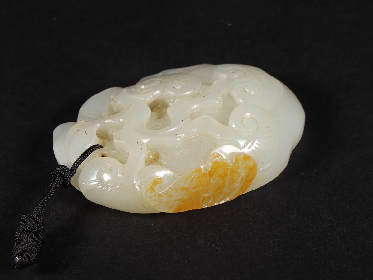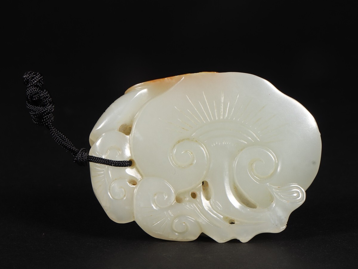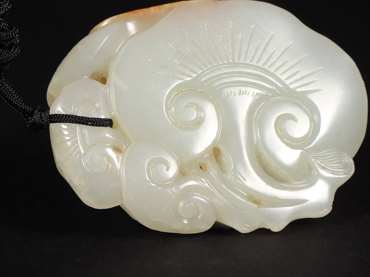 「清時代 和田玉 子料彫り 霊芝 掛件」極細工 裝身具 賞物 中国古美術 旧蔵出