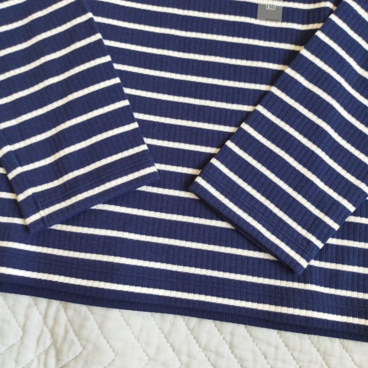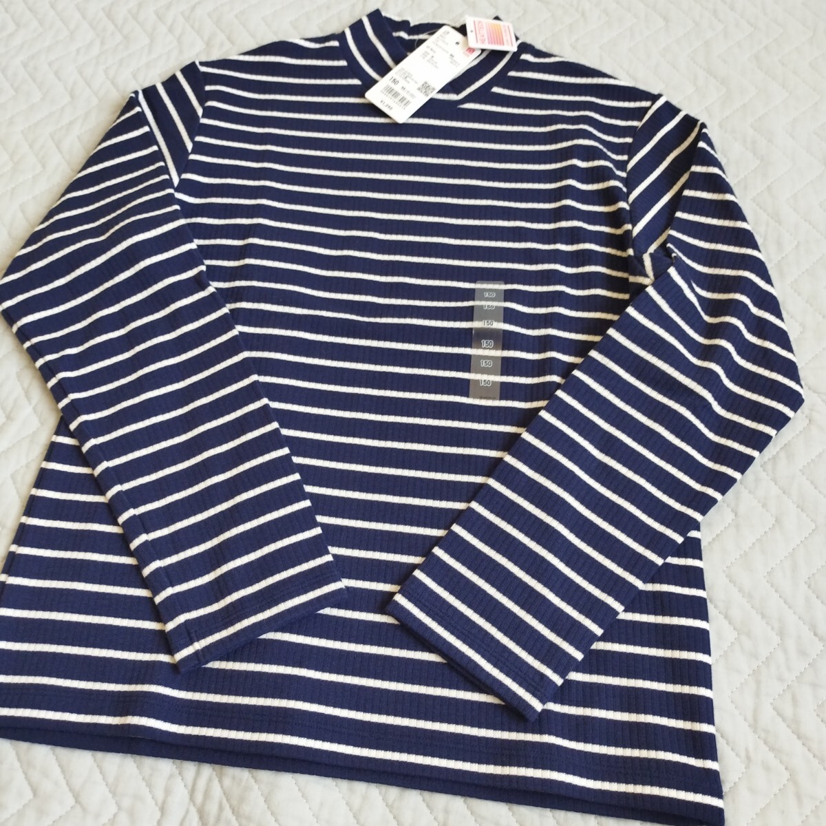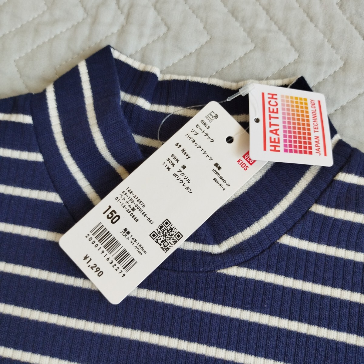 1点のみ 未使用 ユニクロ ヒートテックリブハイネックTシャツ 150 ネイビー 大人も着られる 長袖 ヒートテック Tシャツ 匿名 送料無料