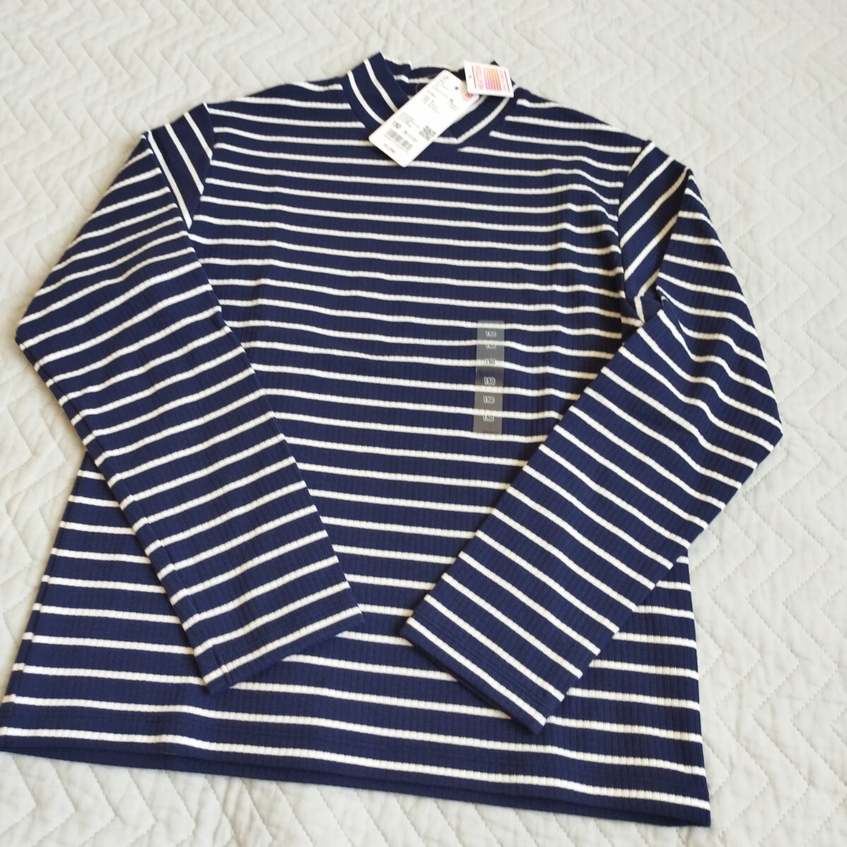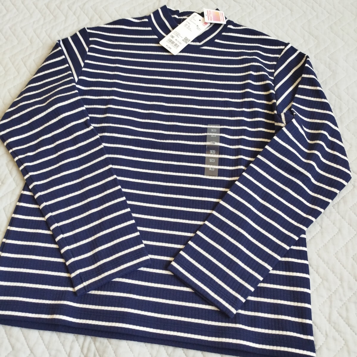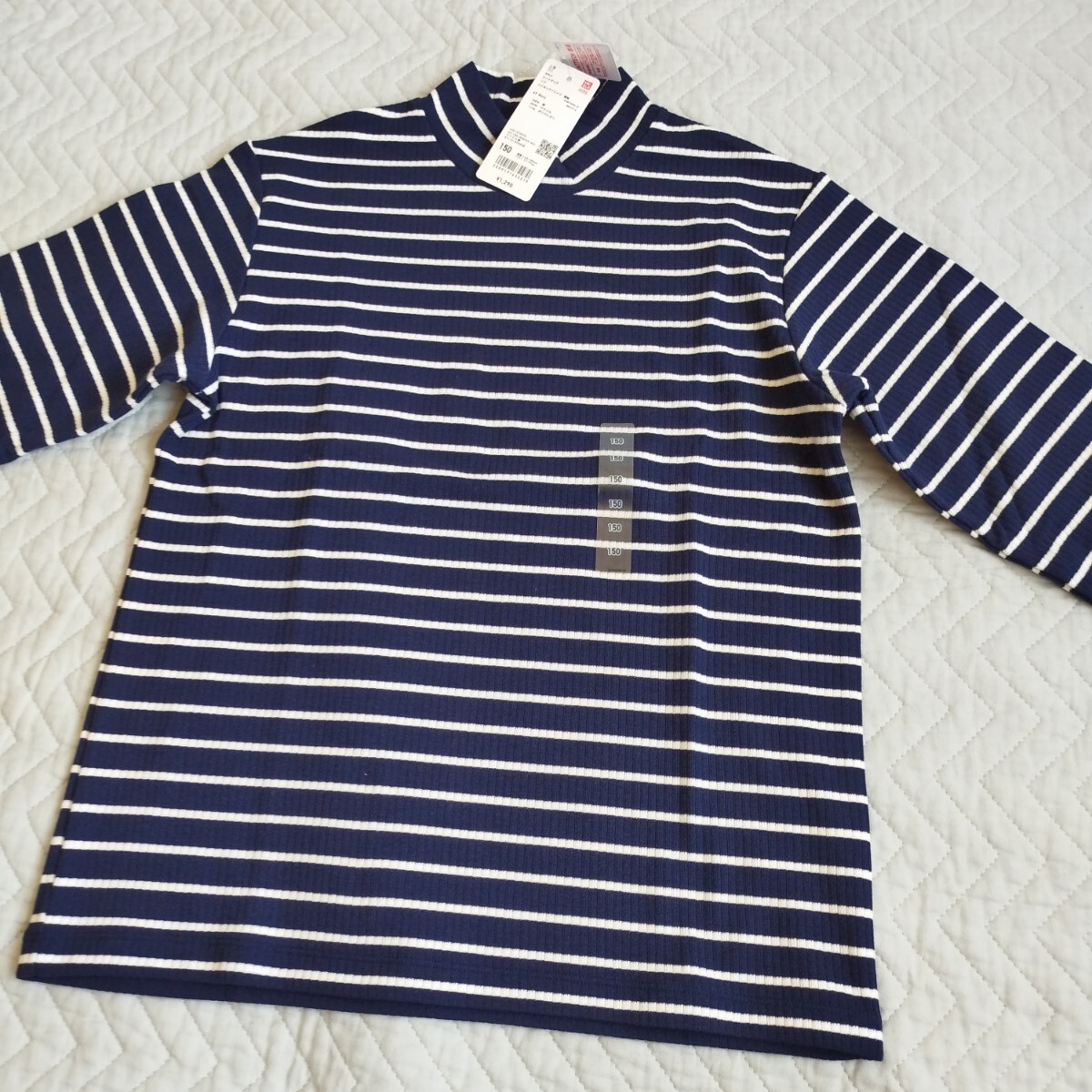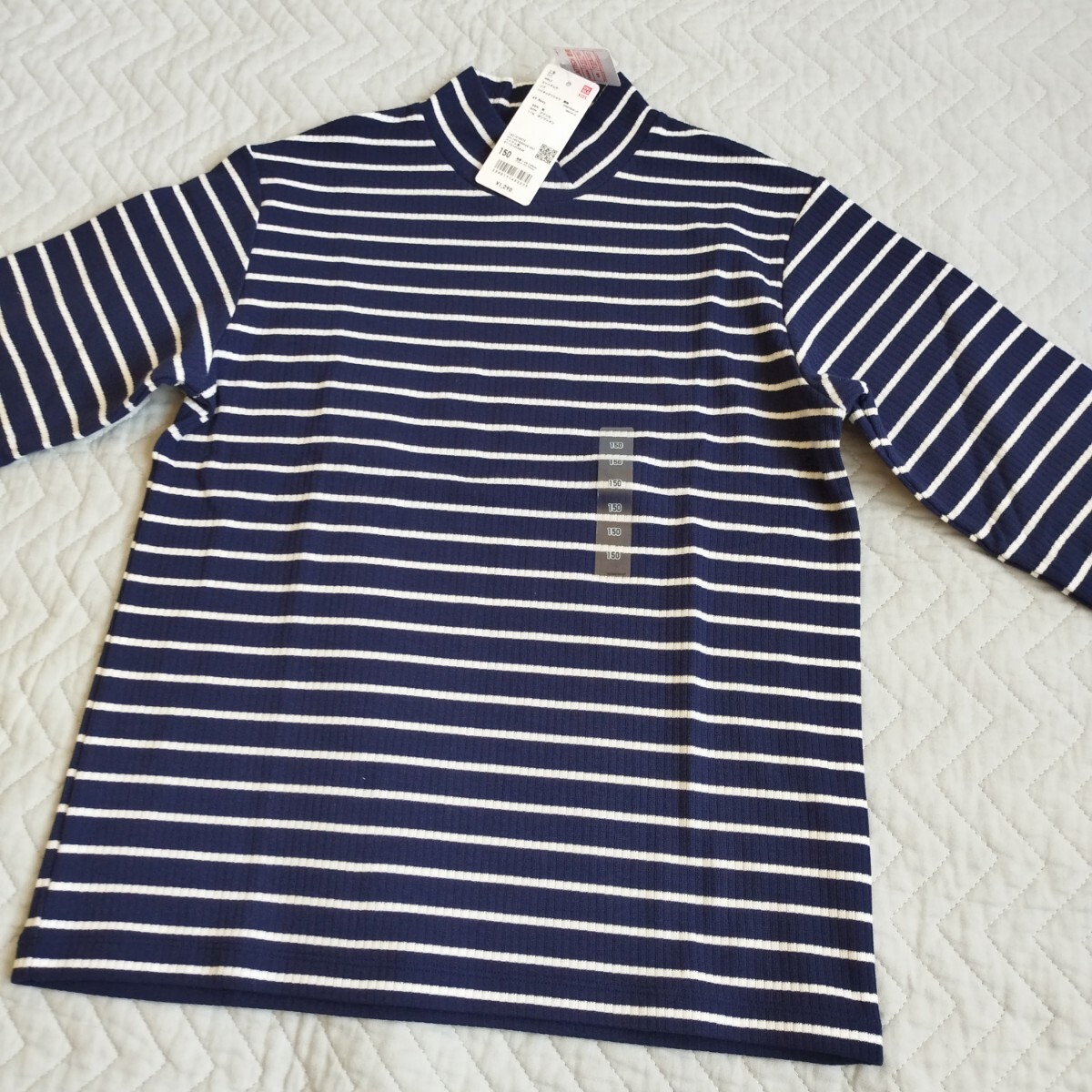 1点のみ 未使用 ユニクロ ヒートテックリブハイネックTシャツ 150 ネイビー 大人も着られる 長袖 ヒートテック Tシャツ 匿名 送料無料