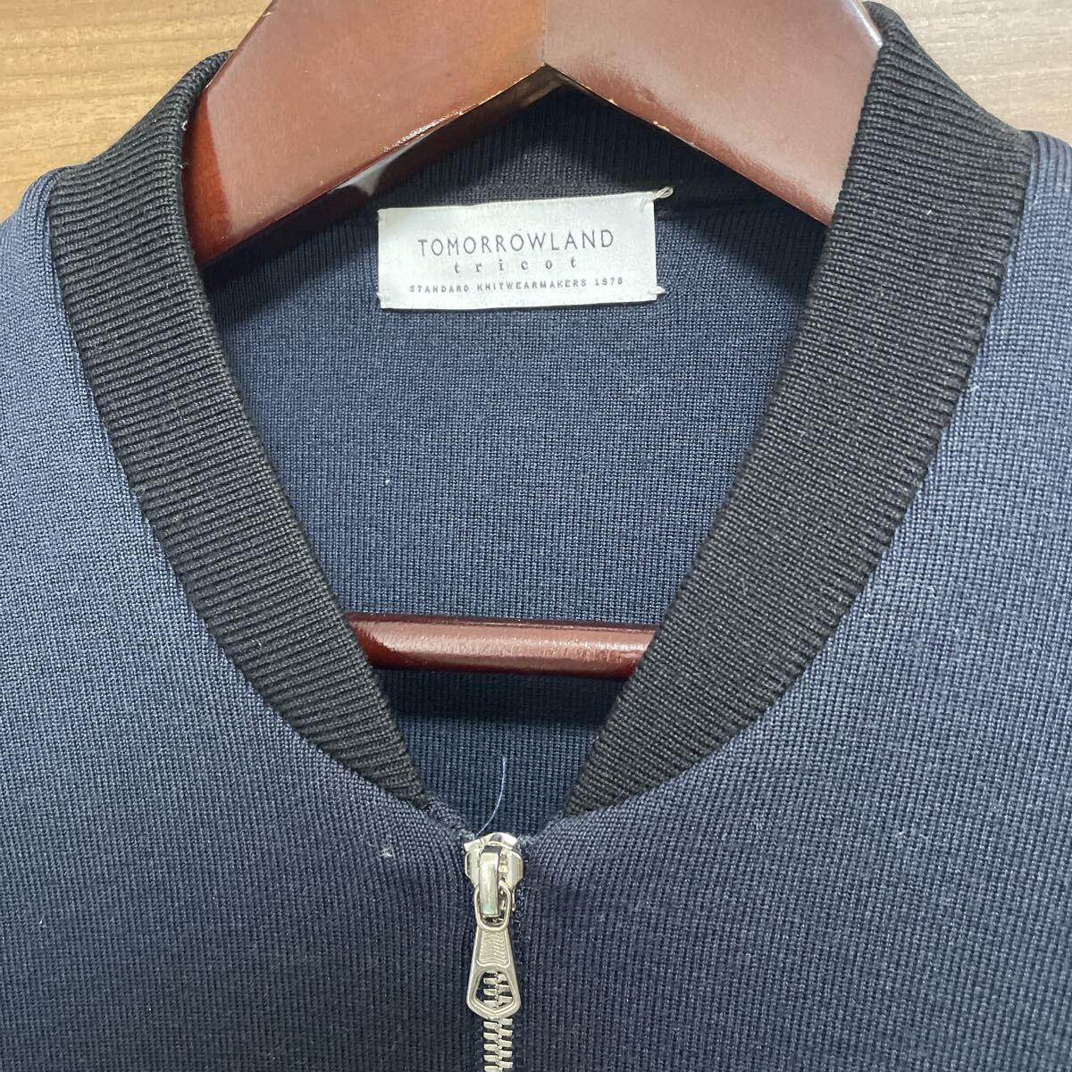 TOMORROWLAND トゥモローランド ジップアップ カーディガン ニット ネイビー ブラック メンズ Mサイズ 黒 紺 ブルゾン ウール ポリエステル