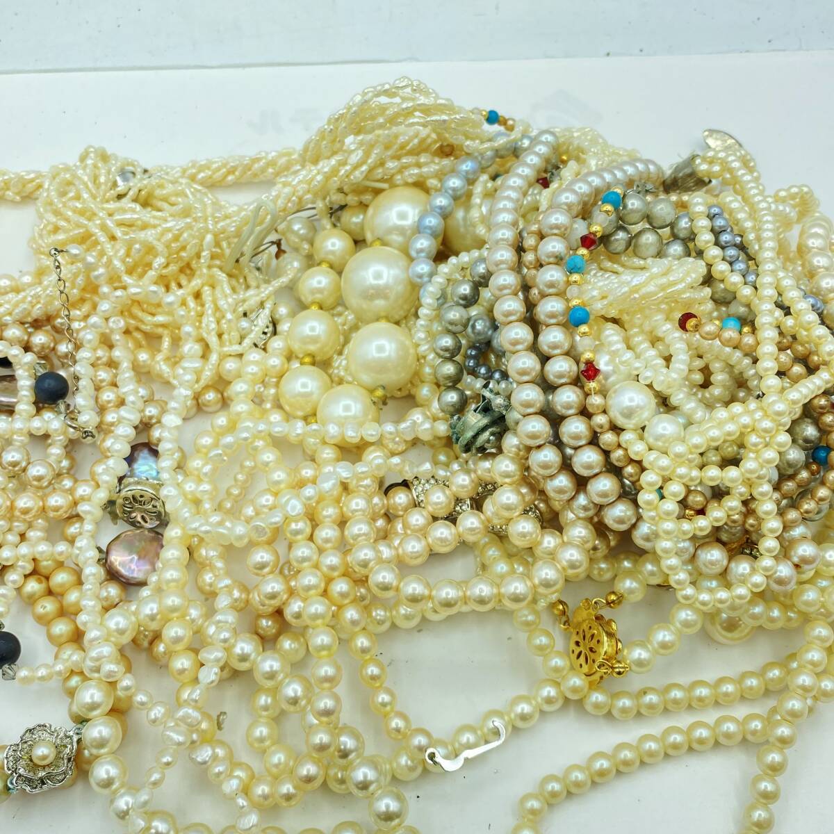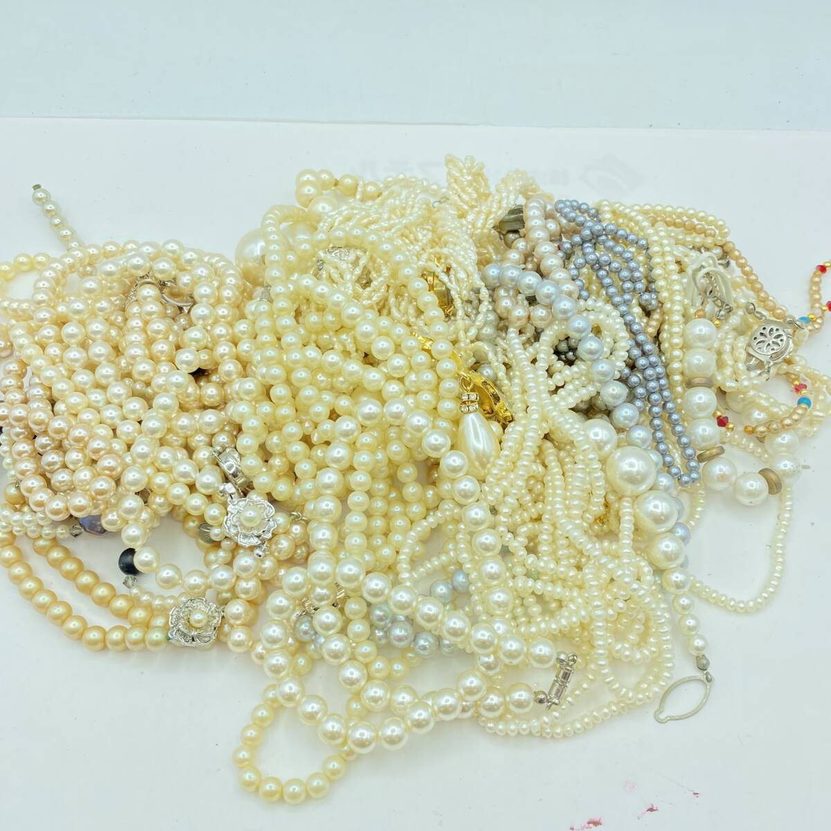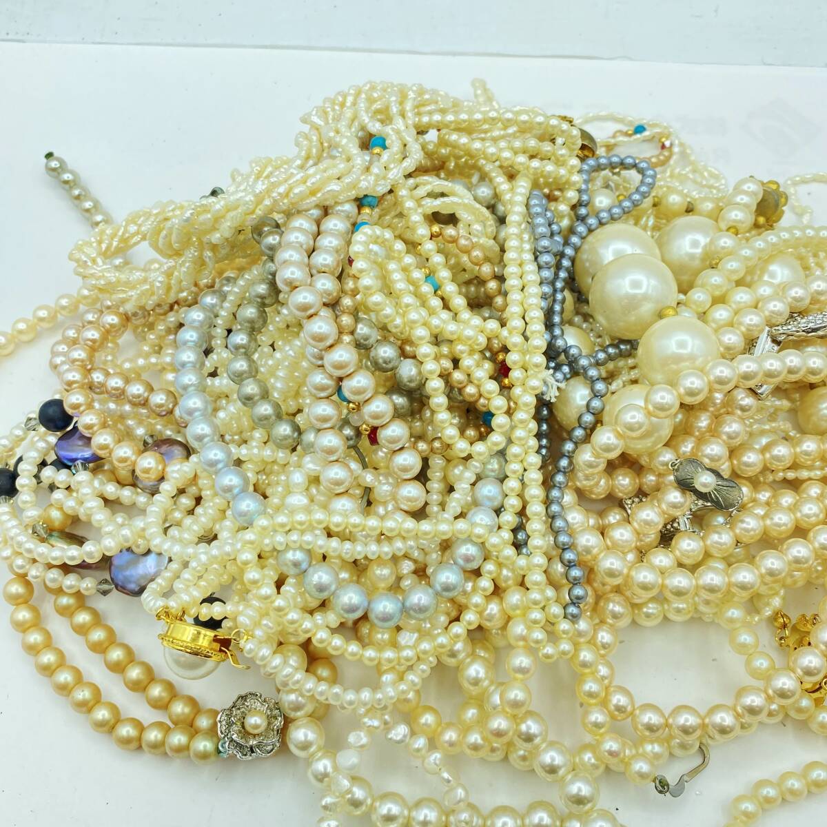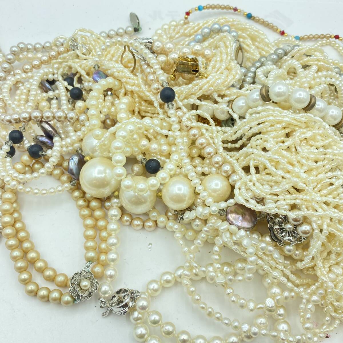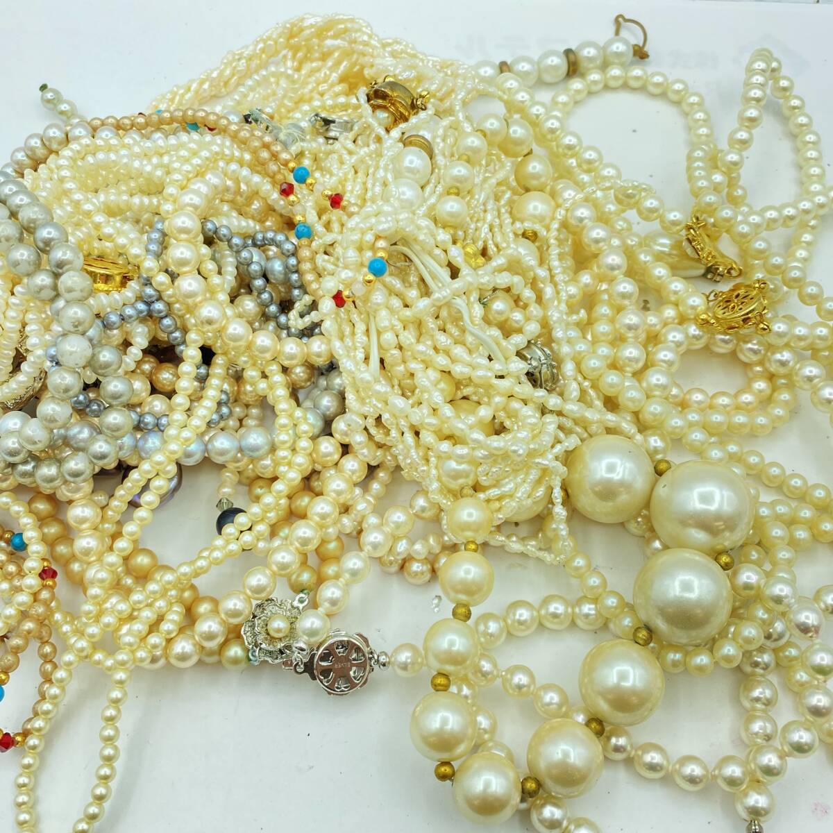 『AA21』パール アクセサリー 約870g ネックレス ブレスレット SILVER刻印あり ホワイトカラー コレクターズ品 現状品