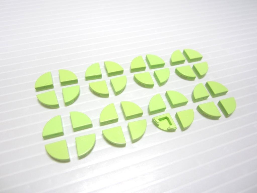 本品はパステル黄緑色の1×1タイル32点セット(扇形)です。