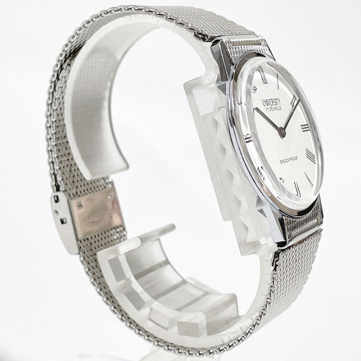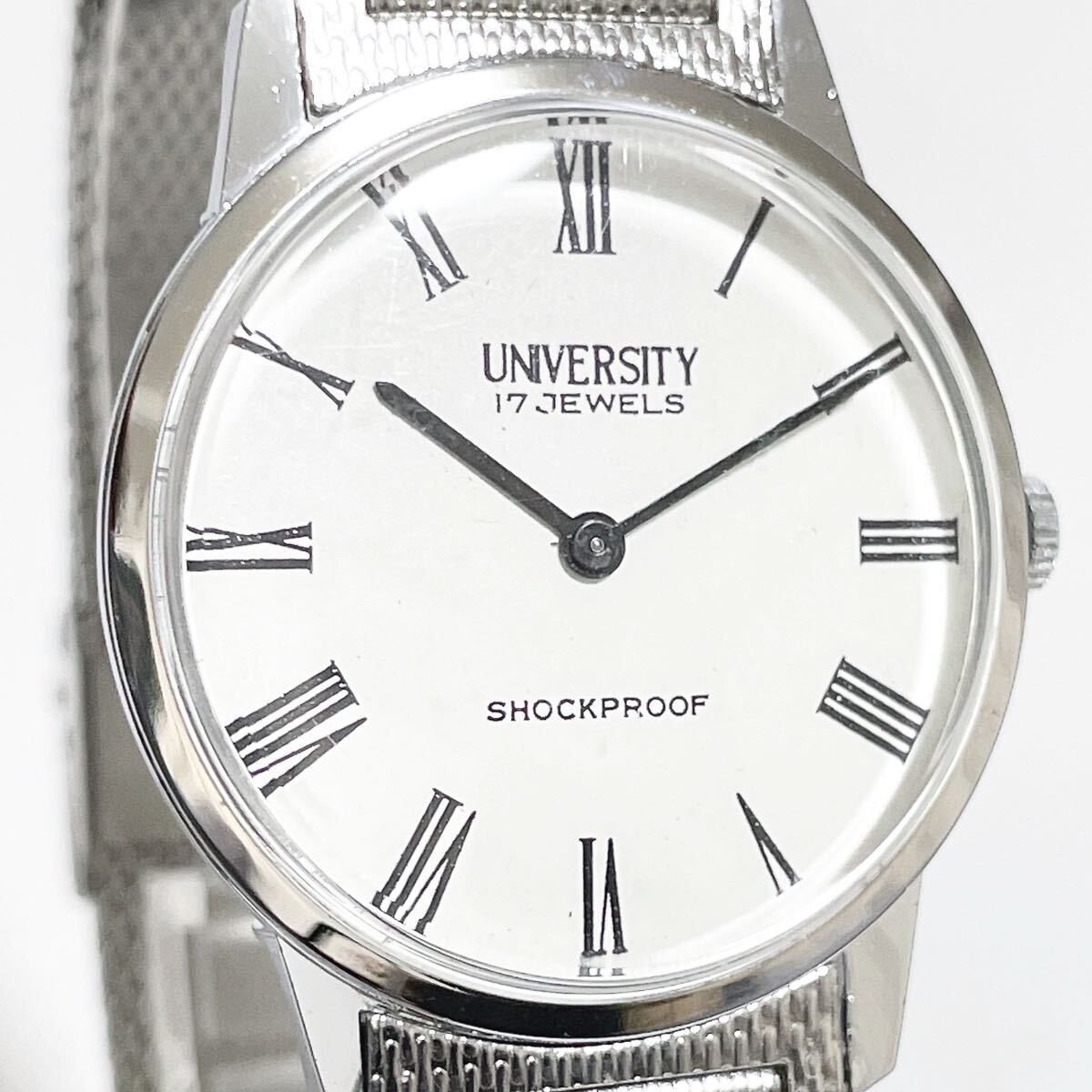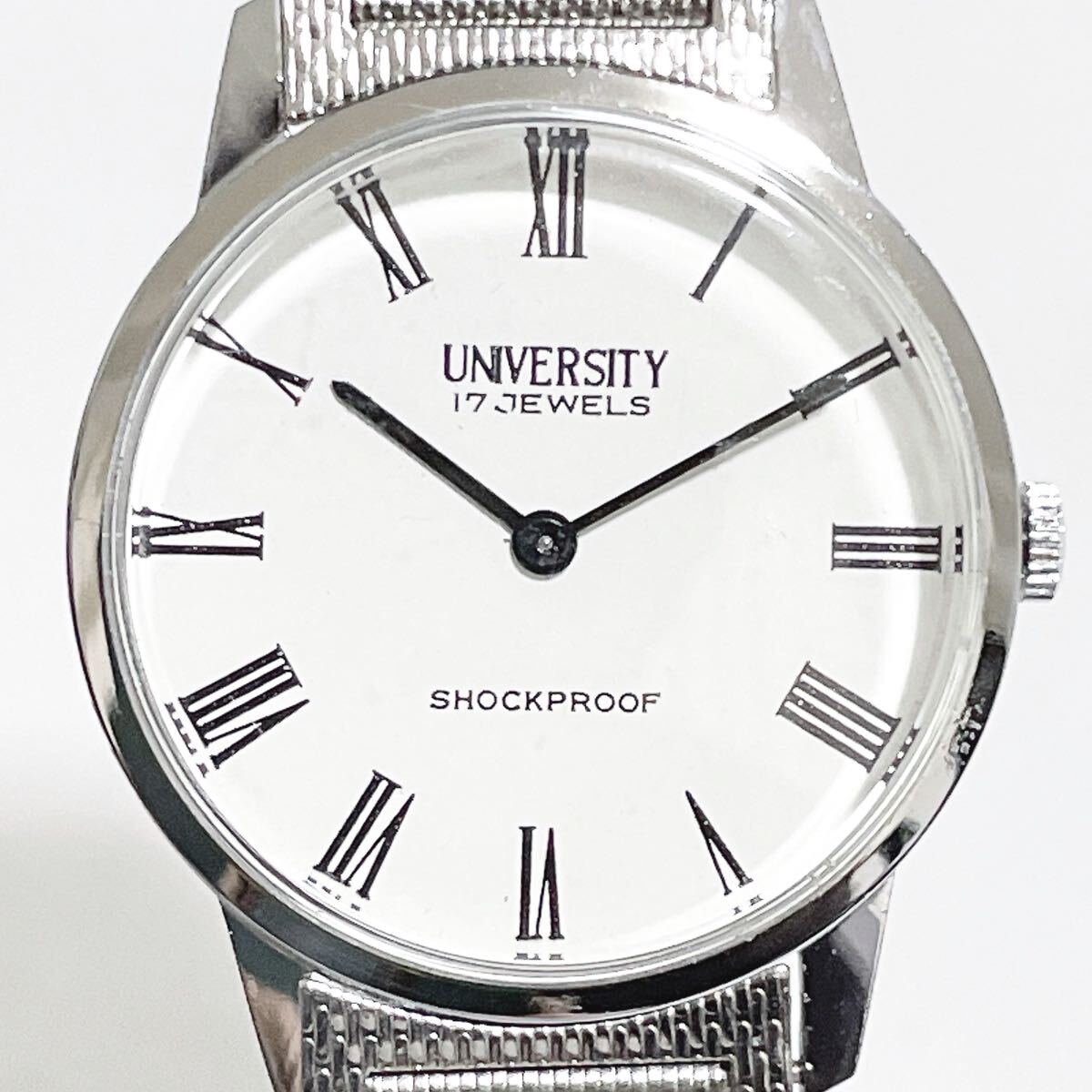 UNIVERSITY ユニバーシティ 17石 手巻 腕時計 ホワイトローマン文字盤 ヴィンテージ ラウンド 2針 純正ベルト