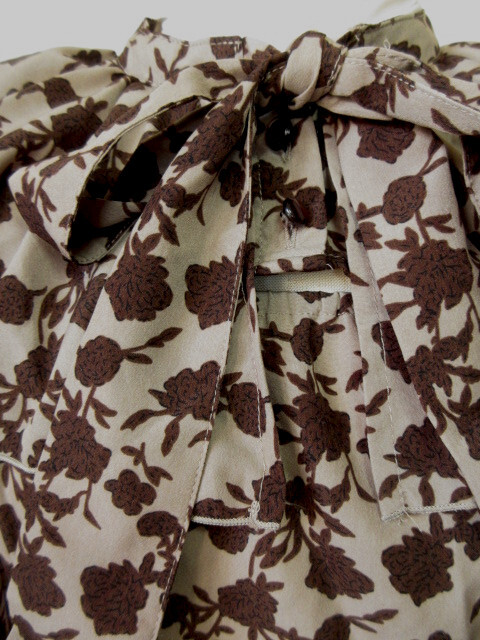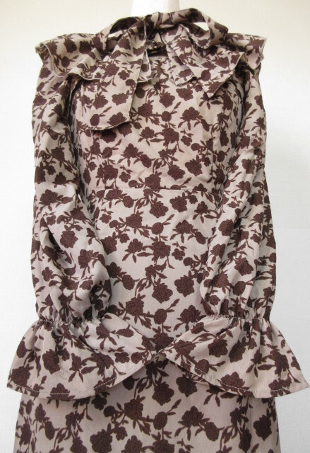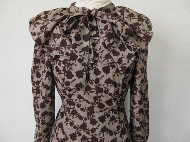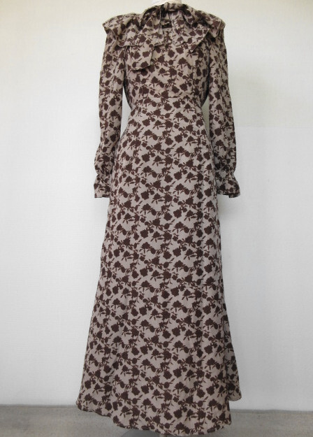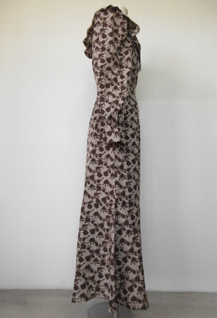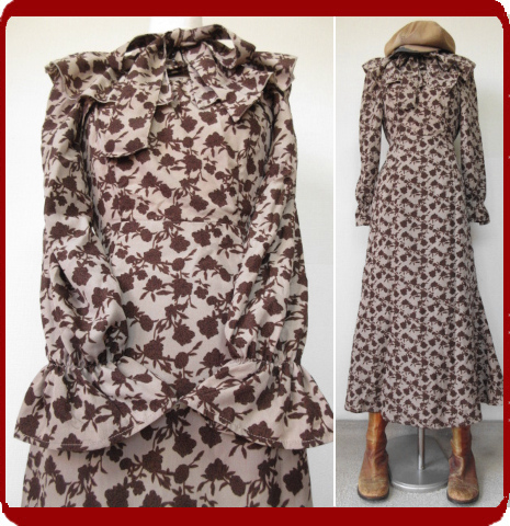 古着♪レトロアンティーク調茶花柄ロングワンピ♪70s60s70年代60年代80年代ヴィンテージ風昭和ロマンクラシカルマキシ丈即決まとめ仕入れ卸