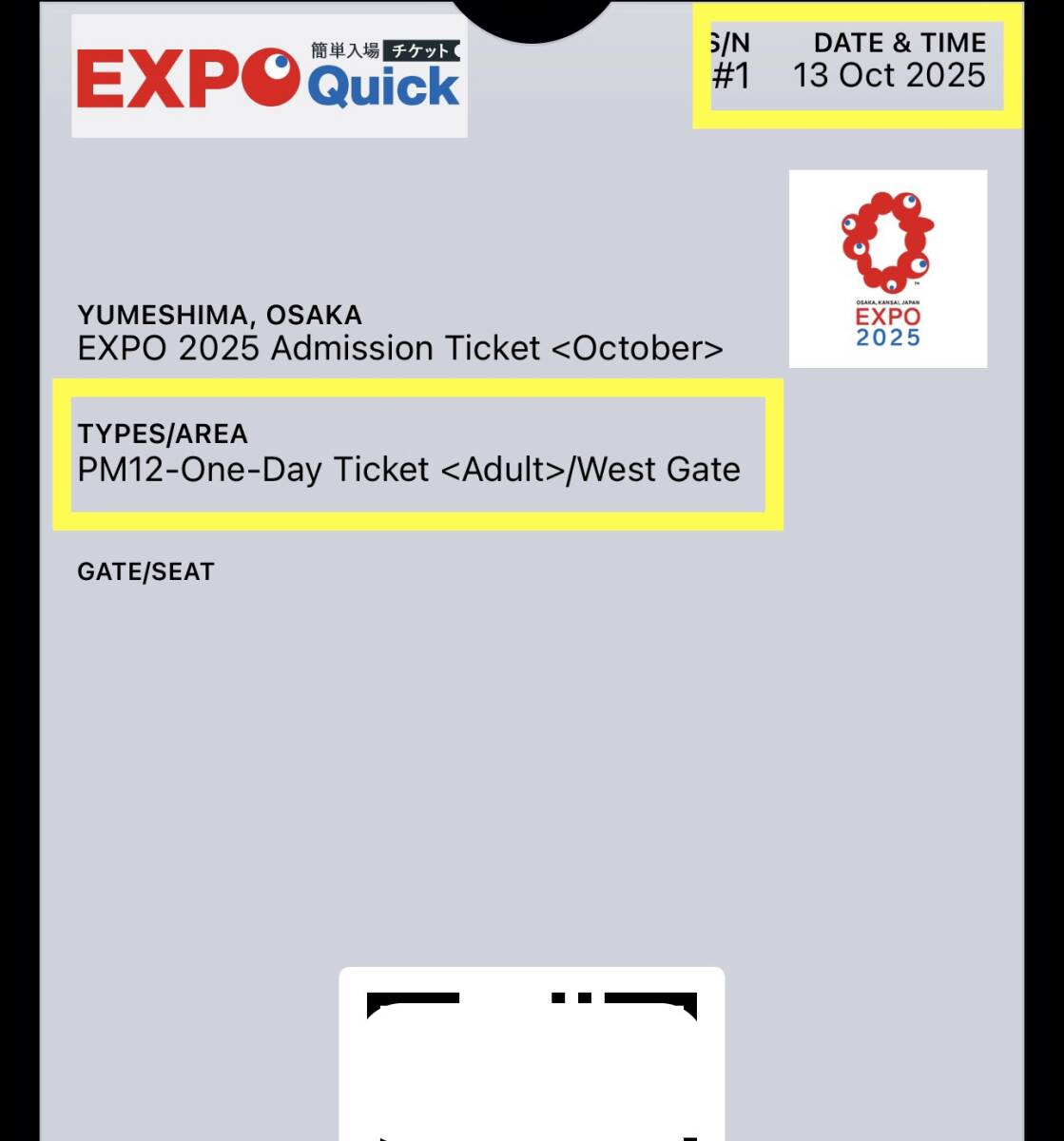 ★☆【関西万博】 最終日 10月13日 クイックチケット大人(EXPO Quick 英語版)(西ゲート 12:00)☆★
