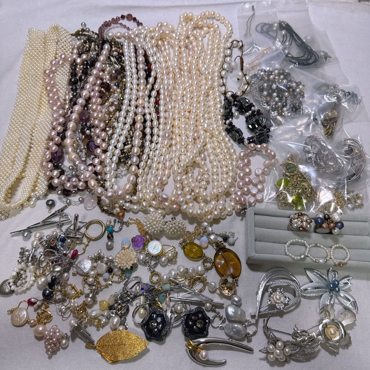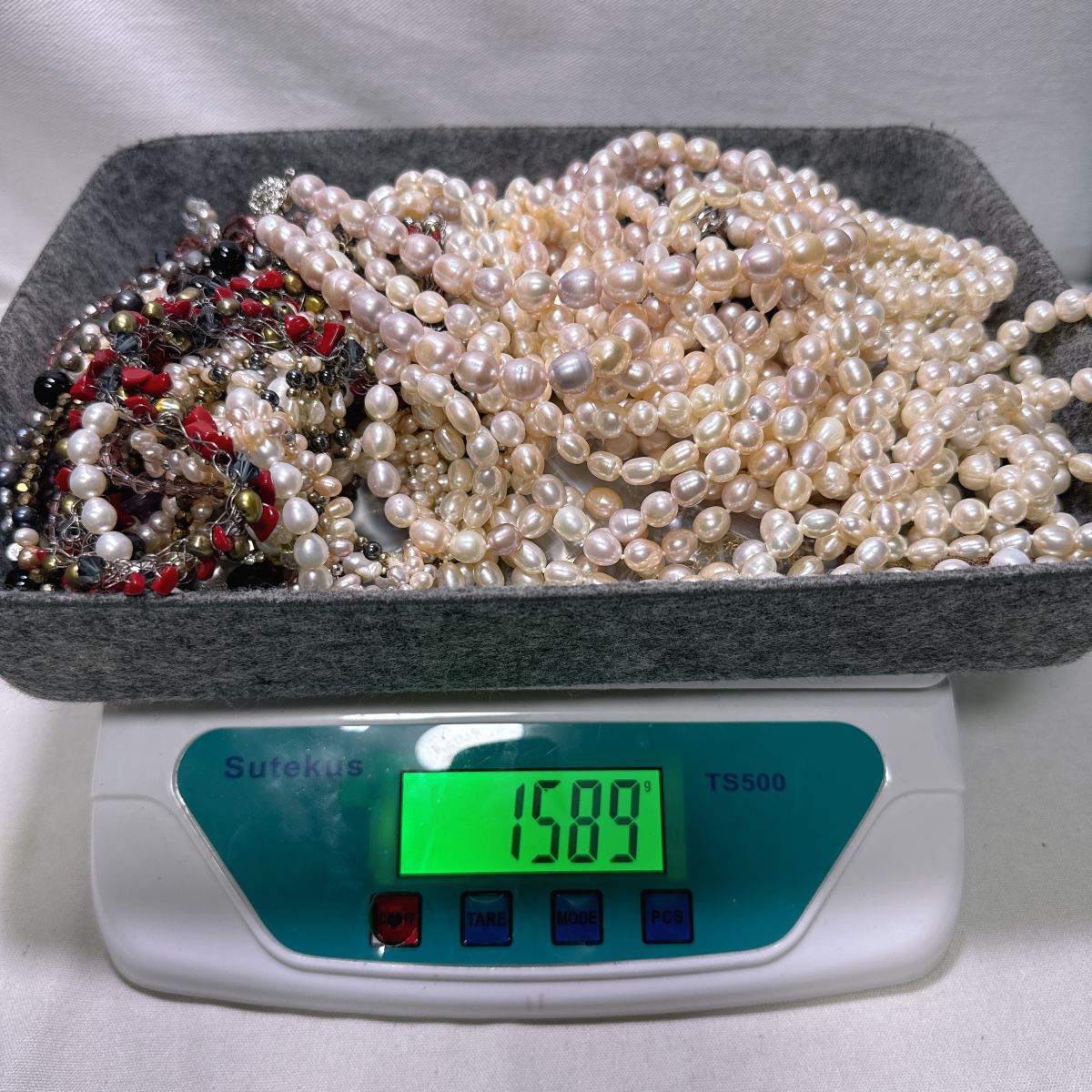 DZ 本真珠 本パール アクセサリー まとめ 約1500g 1.5kg あこや ケシ グレー 淡水 ネックレス ペンダント ブレスレット SILVER 等