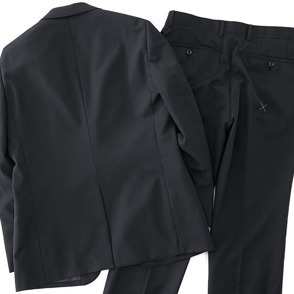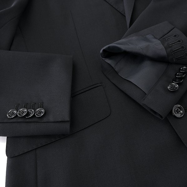新品 未使用 紙タグあり A6サイズ(普通体型のLサイズ相当) 胸囲94 胴囲82 身長175 ※商品に記載されたサイズ・寸法です※ 【ジャケット】 肩幅44cm 身幅51.5cm 袖丈60.5cm 着丈72cm 【スラックス】 ウエスト実寸83cm(内回り1周) 股上24cm 股下92.5cm 裾幅18.5cm 腿幅28.5cm(股下10cm部分) 表生地:毛50% ポリエステル50% 胴裏地:ポリエステル100% 袖裏地:ポリエステル100% 下衣裏地:ポリエステル100% ブラック |