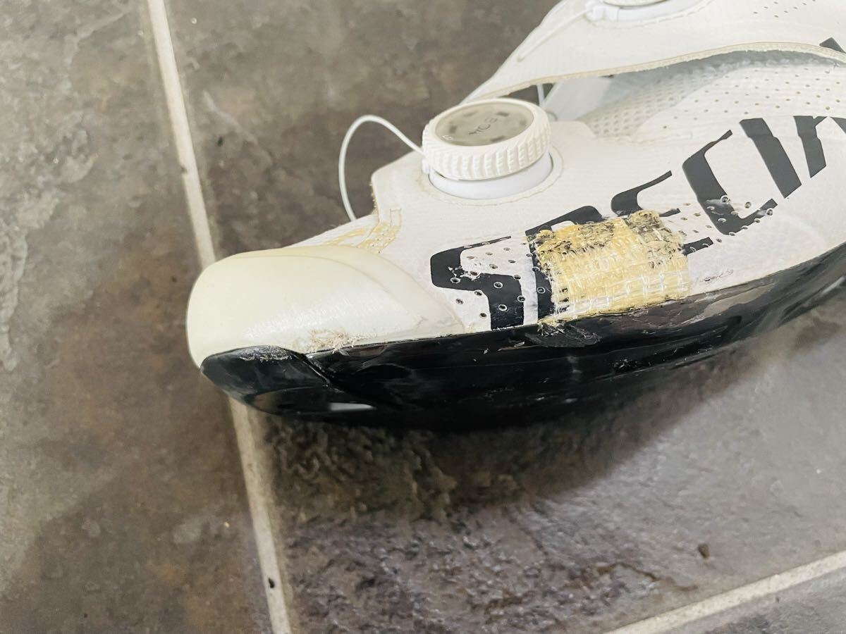 左シューズは落車による擦れが有り補修してます。