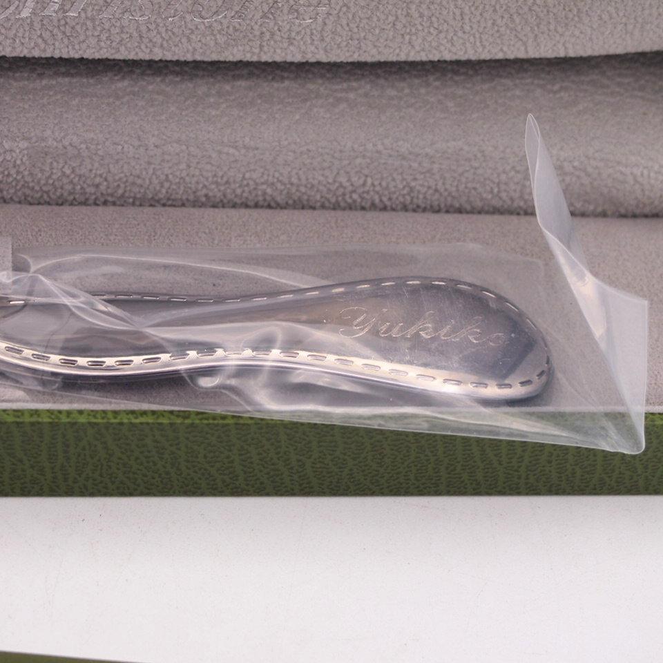 包装紙を私を開けましたので、未使用品ですが、銀特有のクスミや黒ずみがややございます。そのため「未使用に近い」としております。シルバークリーナーを使えばすぐに綺麗になります。