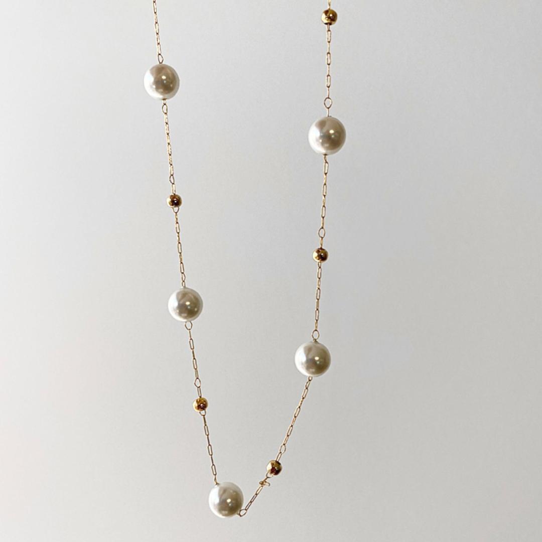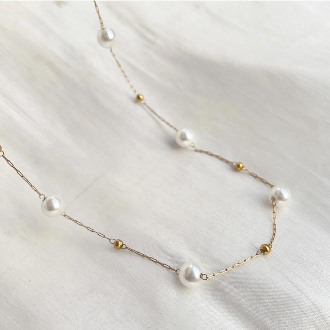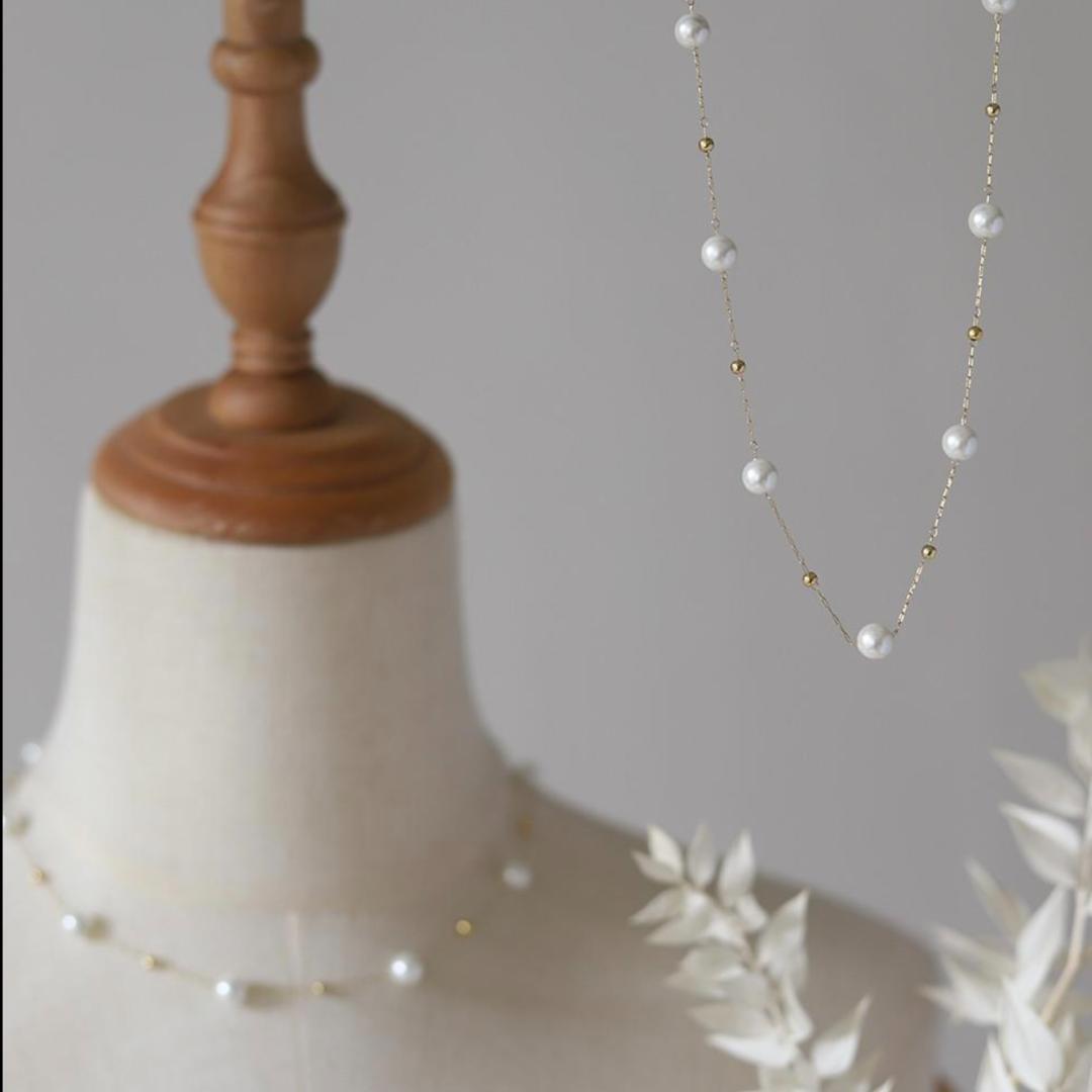華奢なチェーンにパールとボールが交互に等間隔に付いたデザインです♪
