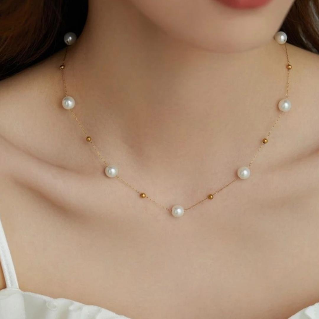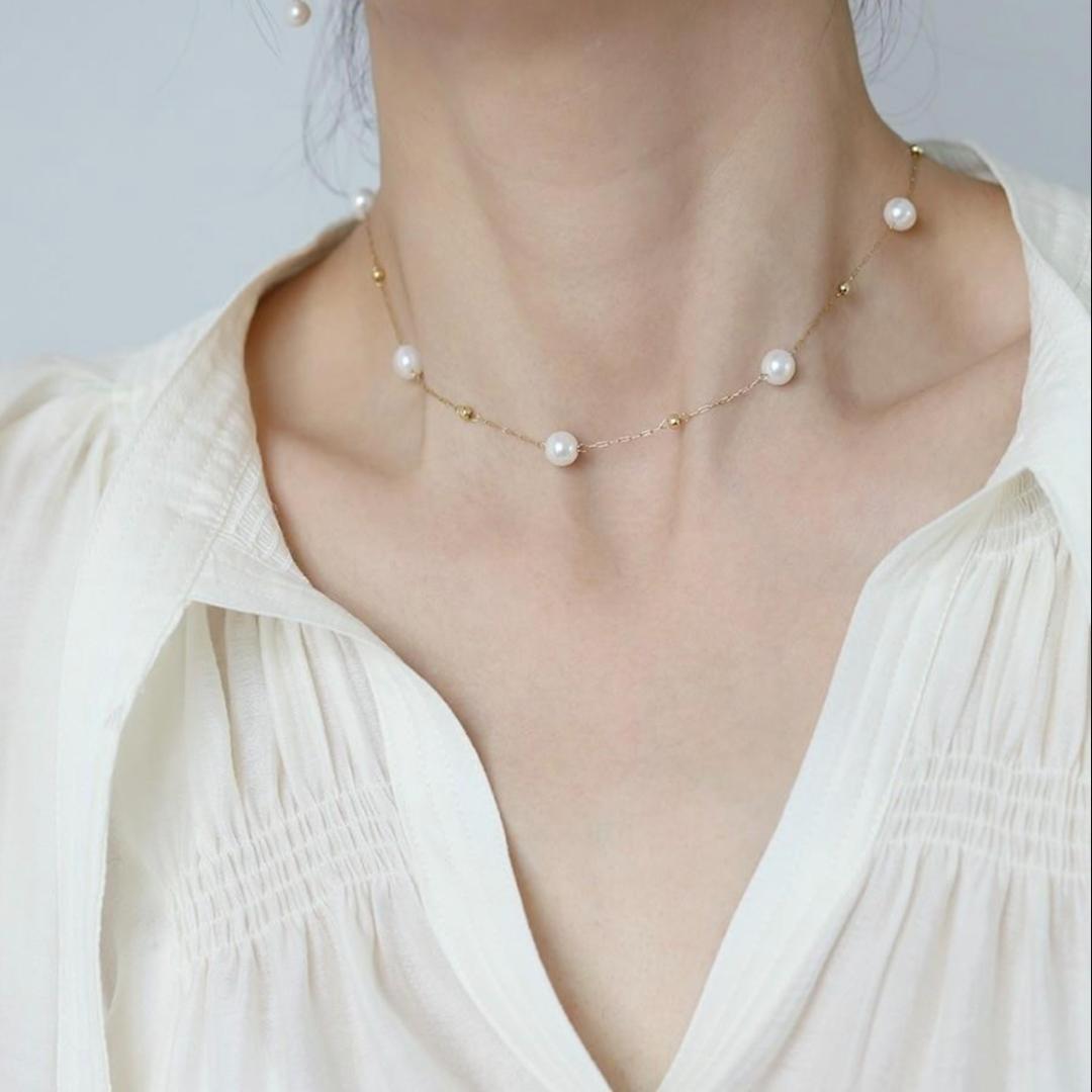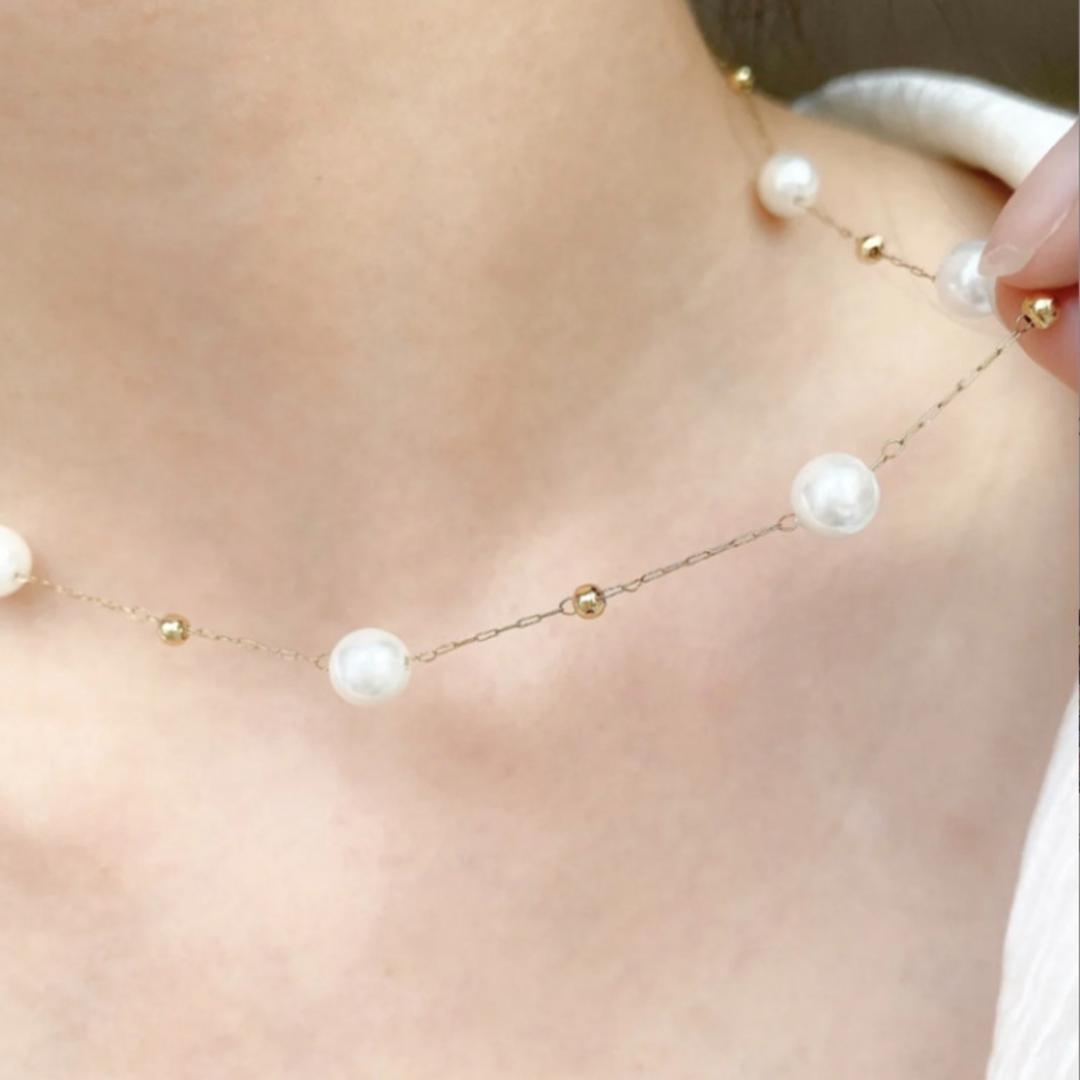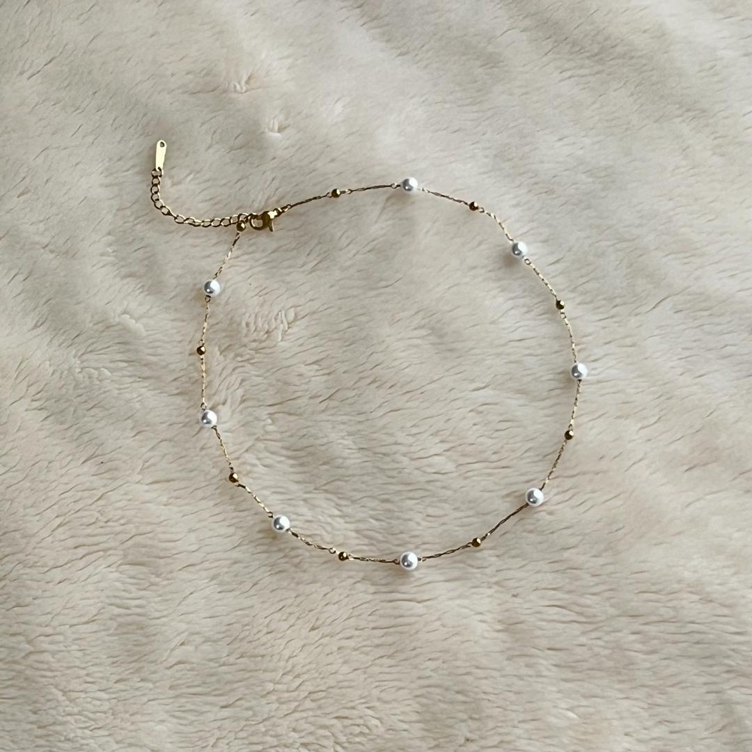 華奢なチェーンにパールとボールが交互に等間隔に付いたデザインです♪