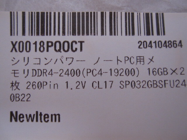 ★★ 送料無料 匿名配送 Silicon Power シリコンパワー DDR4- 2400 PC4-19200 1.2v対応 16GB×2枚 (32GB) SP032GBSFU240B22