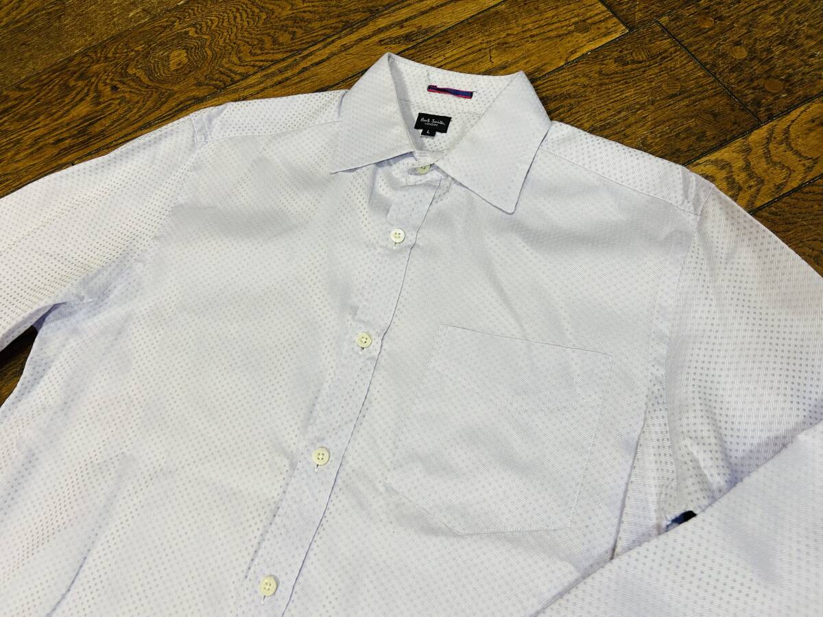 A3317 ポールスミス Paul Smith◆長袖 ワイシャツ/ドレスシャツ メンズL 薄紫 コットン100% クリーニング済