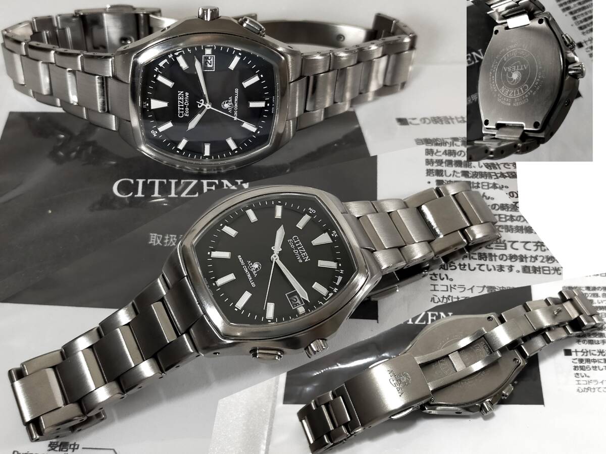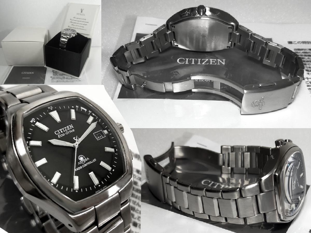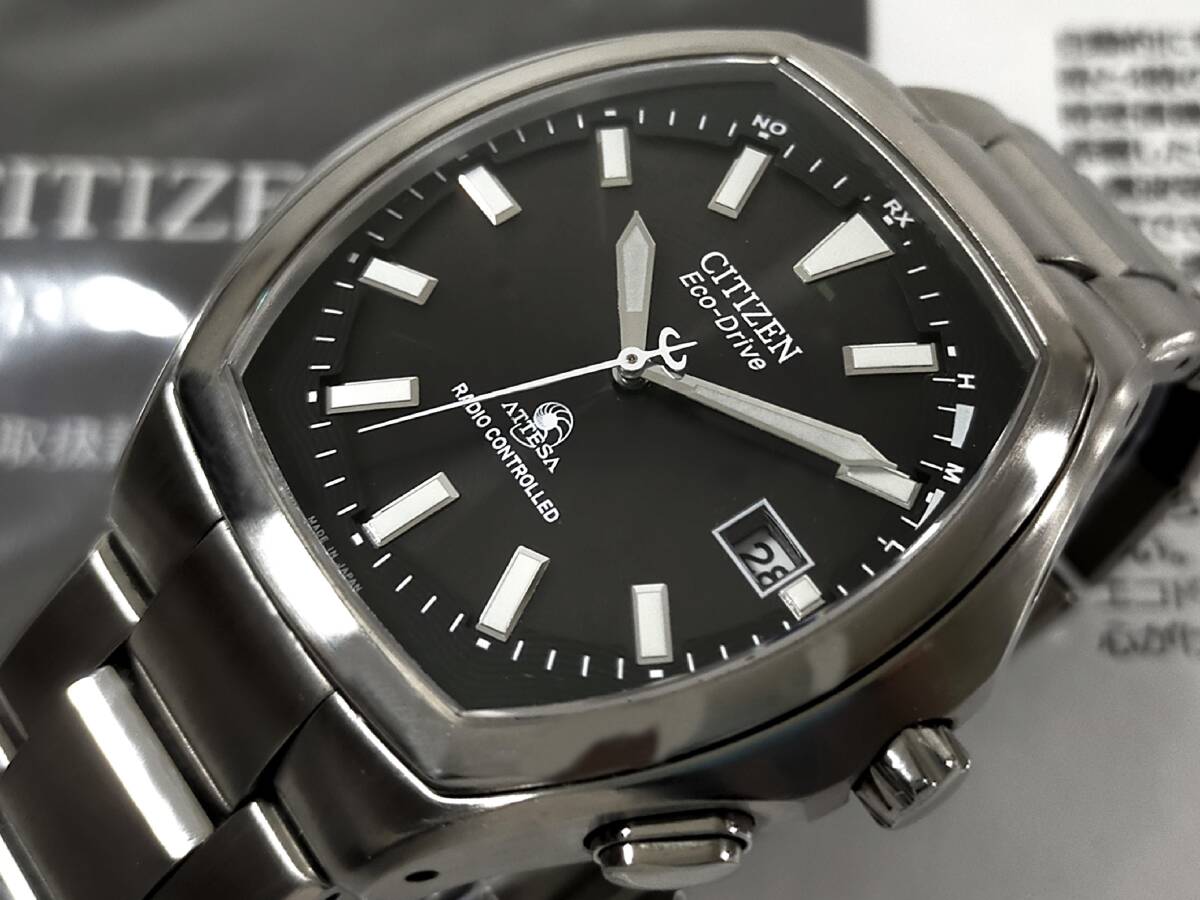 | 商品説明 | ★超レア品★超美品★シチズン アテッサ エコドライブ(ソーラー充電)電波時計ATD53-2661 定価73,500円 チタン軽量 文字盤 黒♪♪トノー型モデル メンズ ●●時計の仕様、サイズ、腕周りの長さは下記の説明に明記させて頂いていますので必ずご確認お願い致します。●● メーカー希望小売価格73,500円(税込) ★★超レアなアテッサ トノー型モデル 中古超美品★★ キズ、スレなどの状態確認は 倍率5倍くらいの強いルーペレベルではなく虫眼鏡の 倍率の弱い1.5倍くらいで確認しました。 ルーペレベルのスレを気にされる方はご遠慮された方が よろしいと思います。 ☆ベゼル(微細なスレ数箇所) ☆ケース(殆どスレなしに近い状態) ☆時計本体の裏蓋(微細なスレ数箇所) ☆バンド(微細なスレ数箇所) ☆バックル(殆どスレなしに近い状態) ☆ガラス(スレなく綺麗) 全体的に検品していますが見落としが有りましたらご容赦下さい。 肉眼で見る限り気になるスレもなく全体的に非常に 綺麗で超美品の部類に入る状態だと思います。 肉眼で検品した状態の感じ方は個人的主観によるものです。 動作良好 万が一到着3日以内に動作不良が有った場合は返品対応させて頂きます。 ●●●●●●腕周り (ケース+バンドの内径)フィットアジャスター付き で すので約 17.7cm~17.2 cmくらいにバックルで調整可能 (余りコマは有りません。)●●●●●● ●● 外観は肉眼確認 ・・・ Aランク ・・・ ●● 当店の判定基準になります。 新品・・・・・・・・・・全くの未使用品(基本的に保証有り。商品により無い場合も有ります。) 新品同様品・・・・未使用で使用感も無く新品に近い状態(薄いスレ小傷0~2箇所くらい) AAランク・・・・・・・試着程度で使用感が少なくかなり良い状態(薄いスレ小傷1~4箇所) Aランク・・・・・・・・使用頻度が少ない感じで殆ど気にならない小傷数箇所有る程度 ABランク・・・・・・・使用感が少々有り目立たない傷少々有るが全体的に中古としては良い状態 Bランク・・・・・・・・使用感が有り傷も多く一見して中古とわかる品 Cランク・・・・・・・・使用感がかなりあり、傷汚れが多く感じられる品 ●●● 入札前にご確認お願い致します。 ●●● 落札前に不明な点は必ずご質問お願い致します。 外観の程度は上レベルの綺麗な中古品を厳選して仕入をしていますが 新品時の外観の状態はわかりませんので新品のような完全な状態 をお考えの方はお控え願います。 外観は現在の状態を説明しています。 ● 新品では有りませんのでルーペレベルのスレを気に される方、またスレ小キズなど異常に気にされる 神経質な方は恐れ入りますがお控え願います。 あくまでも中古ということをご理解お願い致します。 ● 見落としがないよう細心の注意をはらって検品していますが 光の角度でガラス、メッキ部などの微妙なスレ、その他 見落としが有った場合はご容赦下さい。 ● あくまでも中古仕入で取り扱い等の経緯は不明です。 ● 分解掃除はしておりませんが素人による洗浄除菌は していますのでそのままお使い頂けると思います。 ★★★★★★お送りするもの 時計本体、化粧箱(シチズンの箱では有りません) 取扱説明書(コピー) (お送りする内容は写真のものすべてです。)★★★★★★ ☆☆☆☆☆☆☆☆☆☆☆☆☆☆☆☆☆☆☆☆☆☆☆☆☆☆☆☆☆☆☆☆☆☆☆☆☆☆☆☆☆☆☆☆☆☆☆☆ アテッサソーラー電波時計シリーズに質感溢れるトノー型モデル。 先進の技術を体感できると高い評価を得ている「アテッサ」に、トノーケースモデル がラインナップ。金属から削りだしたようなケースや、厚みのあるブレスレットは、 質感やボリューム感、アクティブな若々しさをアピールしています。ラウンドケース モデルとはまた違った、精悍さや存在感が魅力となっているモデルです。 ケース、ブレスレットの仕上げの確かさは、チタン加工に高い技術力を発揮している シチズンならでは、といえるでしょう。もちろんケース、ブレスレットどちらも デュラテクト加工が施されています。 品番 ATD53-2661 説明書No H411 文字盤 色 ブラック ガラス:球面サファイアガラス(無反射コーティング) 側材質:チタン(IP) 表面処理:白色IPメッキ デュラテクト チタンカーバイト処理 日常生活強化防水(10気圧防水性能) 精度:±15秒/月(非受信時) 受信局自動選択機能 定時受信機能 強制受信機能 充電警告機能 過充電防止機能 パワーセーブ機能 バンド チタン ワンプッシュ式三ツ折中留 文字盤/(約)縦33×横30mm 厚み:約10.7mm 重さ:約93g ☆☆☆☆☆☆☆☆☆☆☆☆☆☆☆☆☆☆☆☆☆☆☆☆☆☆☆☆☆☆☆☆☆☆☆☆☆☆☆☆☆☆☆☆☆☆☆☆ ● 配達時間指定(佐川急便) ★★時間指定ご希望の場合は取引メッセージ からお知らせお願い致します。★★ 1 午前中 2 12時~14時 3 14時~16時 4 16時~18時 5 18時~21時 6 19時~21時 配達時間の指定ができない地域が有りますのでご了解下さい。 ● 発送日までの日数について 午前中(午前10時まで)決済手