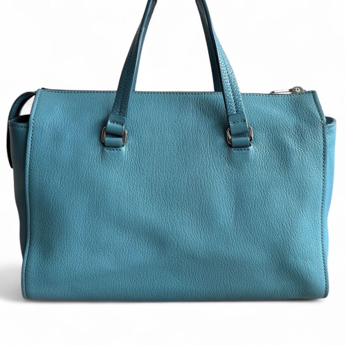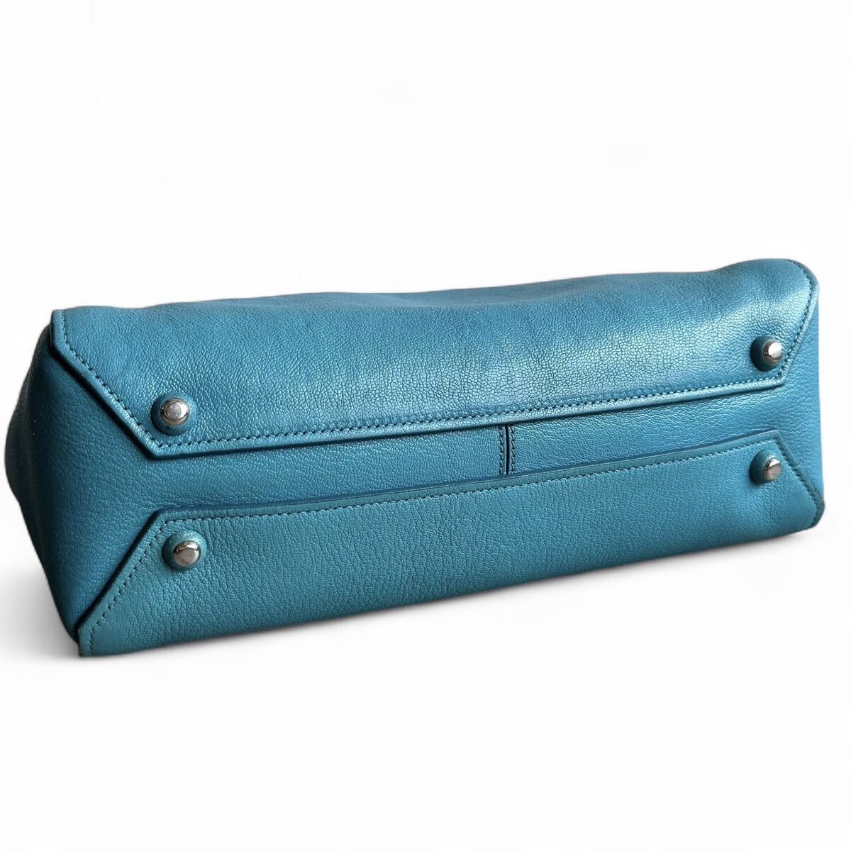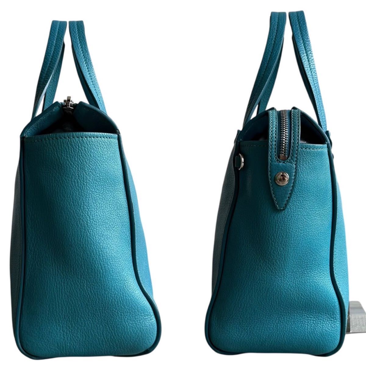 こちらは2WAY仕様のミニボストンバッグ。ハンドバッグとしての上品さに加え、付属のショルダーストラップを用いることで肩掛けもでき、シーンに合わせて使い分けが可能です。本革ならではの質感と、稀少なライトブルーカラーが爽やかさと華やかさを演出し、コーディネートのアクセントに最適です。
