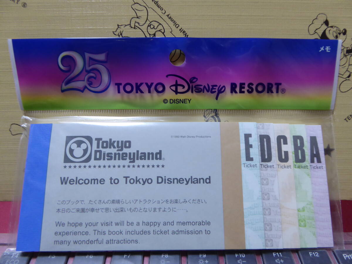 TDL ディズニーランド 25周年・メモ 旧チケット型メモ  ミッキー TDR/TDS