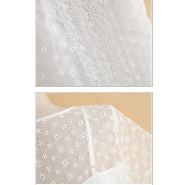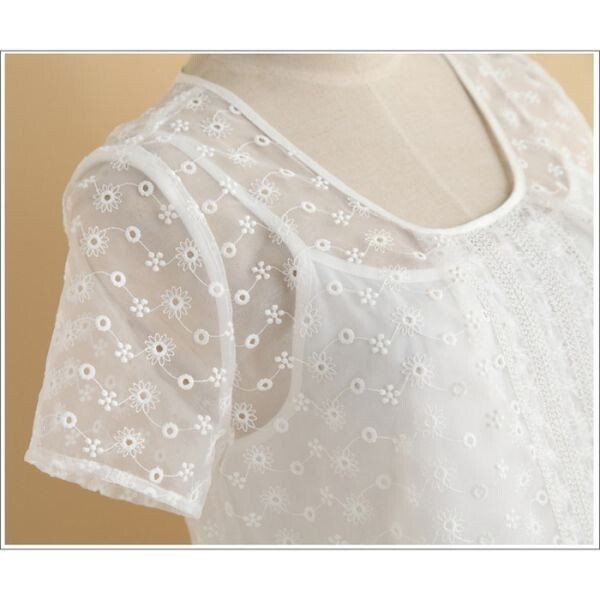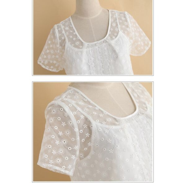 ホワイトトップス ホワイトブラウス レースTシャツ レース 透け感 シフォンチュニック キャミソール付き キャミソール 二枚重ね クリームカラー Tshirtふんわり大人フェミニン、でもしっかり機能的な欲張りブラウスが誕生しました。長時間の座り仕事や洗濯後もシワになりにくい素材を使用しているのでお家でのお手入れも簡単です。汗をかいても肌に残りにくいドライタッチな素材感で着心地サラリ。汗に強いので夏場でも快適な着心地です。
