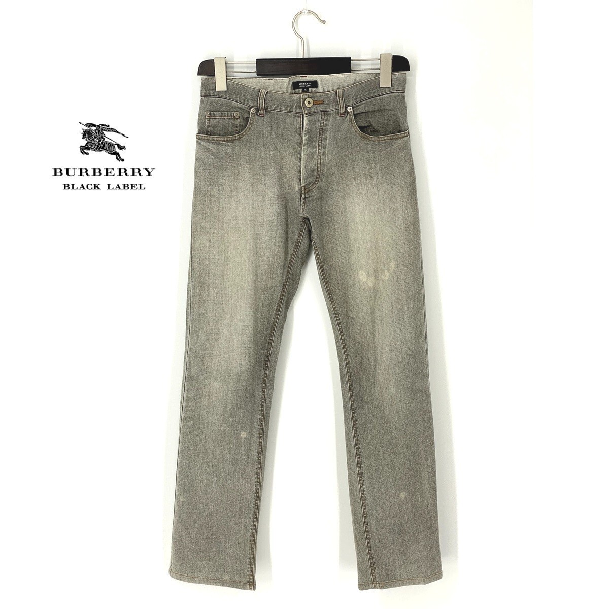 A7640/美品 春夏 BURBERRY BLACK LABEL バーバリー コットン ストレッチ ペイント加工 ストレート ジーンズ デニムパンツM程 76灰色/メンズ