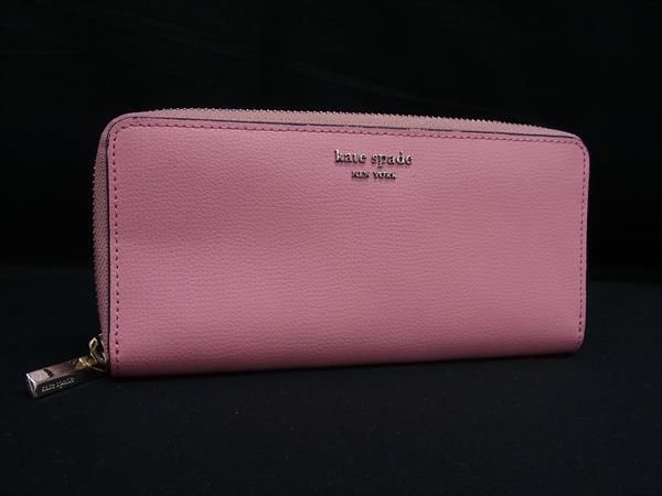 ■美品■ kate spade ケイトスペード PWRU7245 レザー ラウンドファスナー 長財布 ウォレット 小銭入れ カード入れ ピンク系 DJ0964