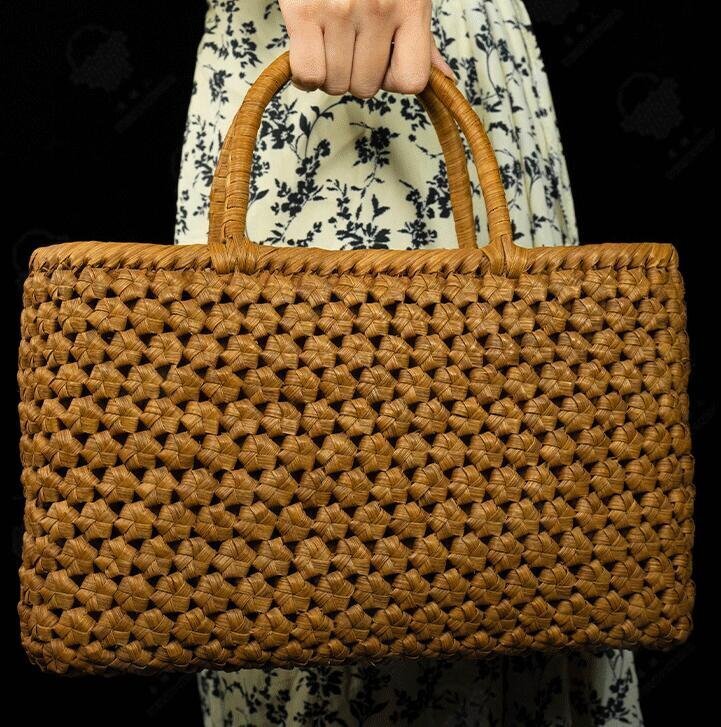 職人の手作り 山葡萄かごバッグ 手編み山葡萄籠バッグ バスケット籐かご 六角編み高級ハンドバック