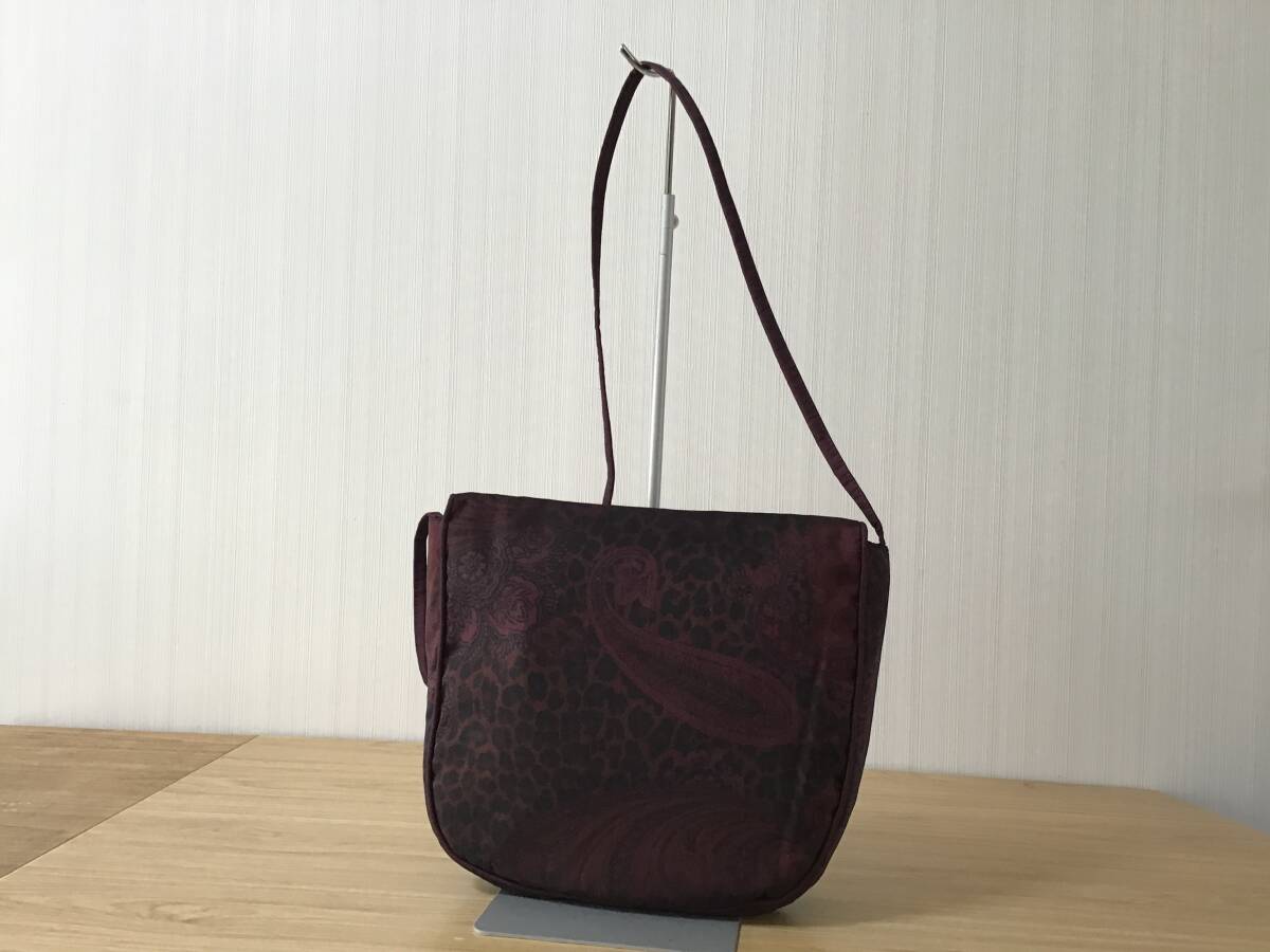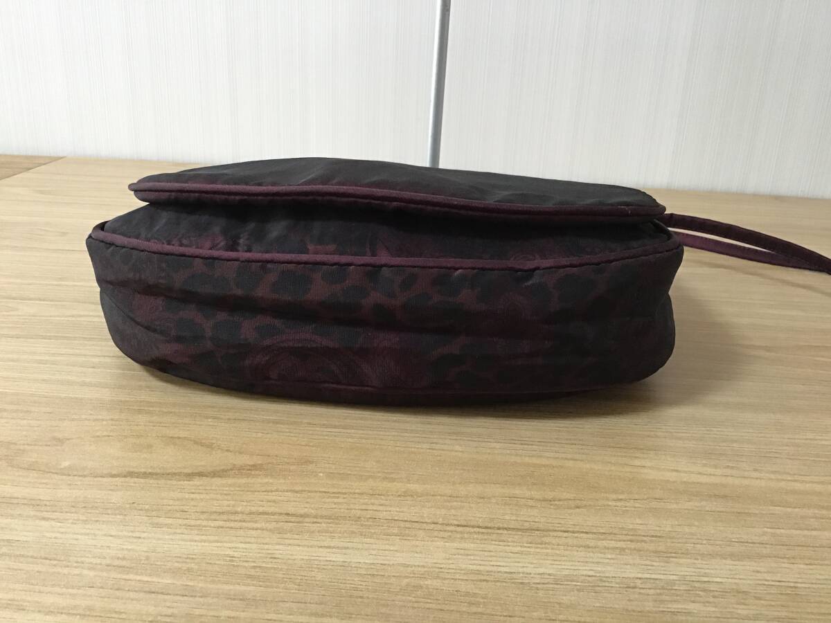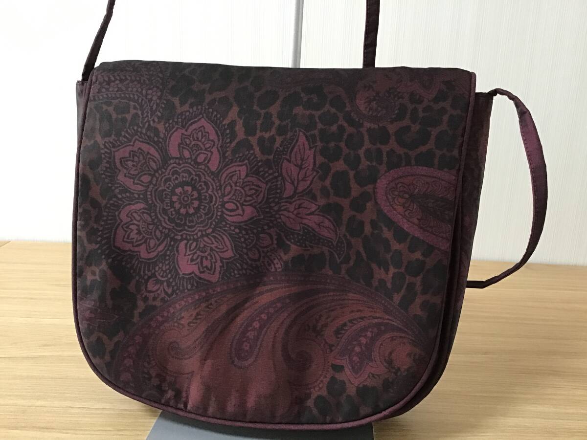 サイズ:縦26cm、横27cm、まち底で5.5cm、ストラップは104.5cm、開口部はふたかぶせで留め具無し