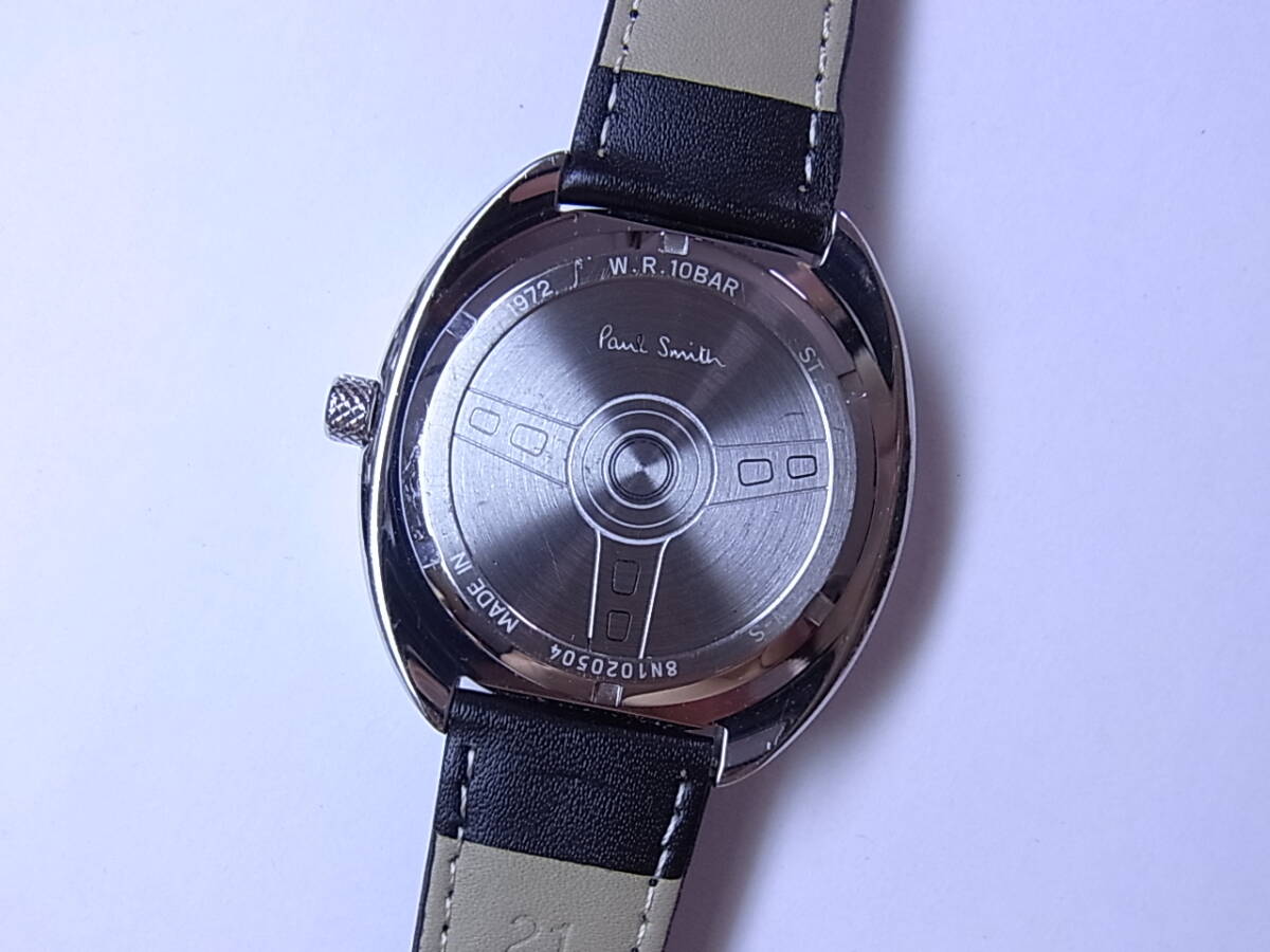 Paul Smithポールスミスのメンズソーラークォーツウォッチです。こちらはソーラーセルが搭載されており、太陽光等の光を受けて充電し駆動します。ガラス面は目視チェックにおいて特に目立つほどのキズはありません。ケースに多少のスレはありますが、社外品の皮ベルトもキレイで全体的には悪くないコンディションだと思います。オリジナル尾錠。簡易クリーニング済み。ケース横幅約44mm。現在、ソーラーパワーで快調に動いています。中古品ですのでご不明な点はご質問頂き、十分ご納得のうえでご入札ください。安値スタートですので落札後の返品、クレームはご容赦願います。発送はゆうパック、レターパックプラス、ライト。なお、評価に「悪い」が多い方や新規の方の落札者に不払いが多いため、「悪い」評価が全体の3%以上ある方は入札しても削除させて頂きます。また新規の方、評価の少ない方もこちらの判断で削除させて頂くことがあります。