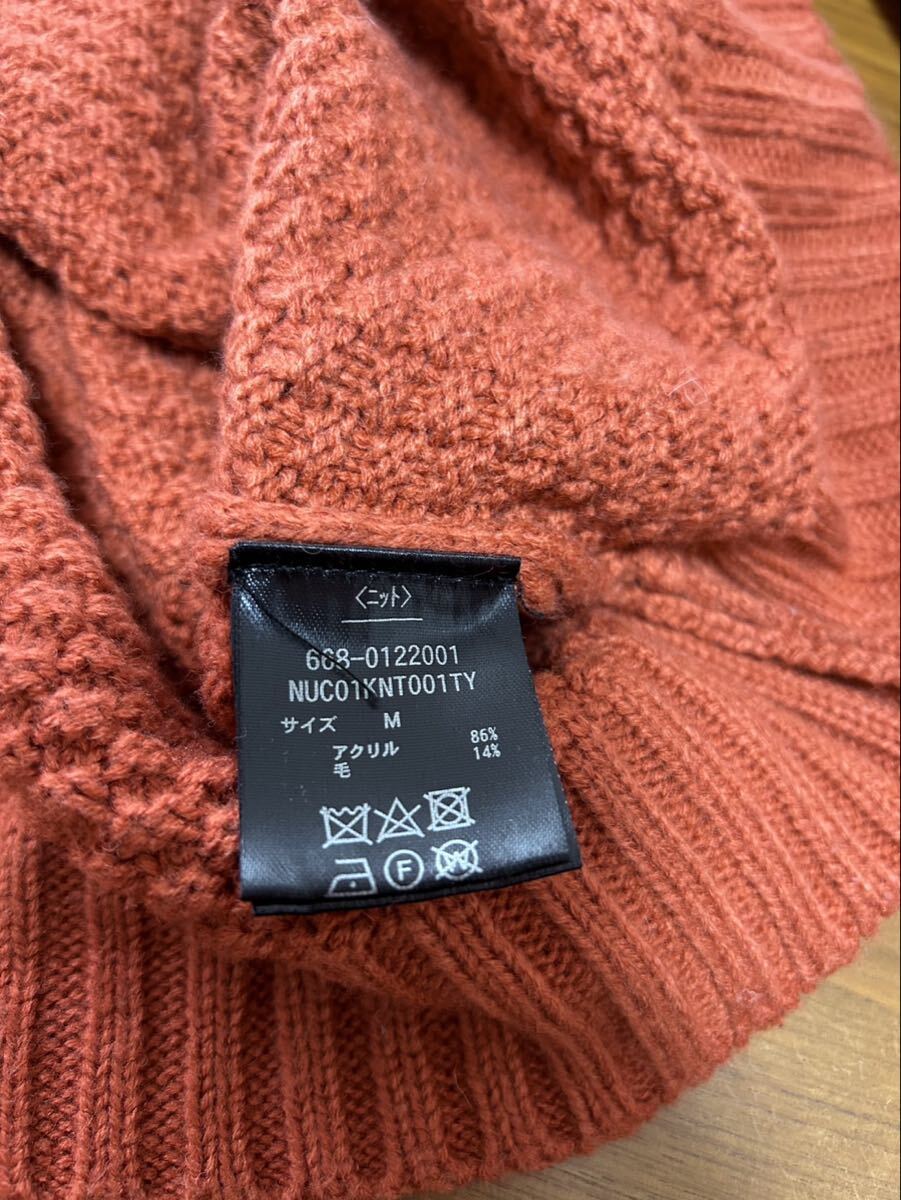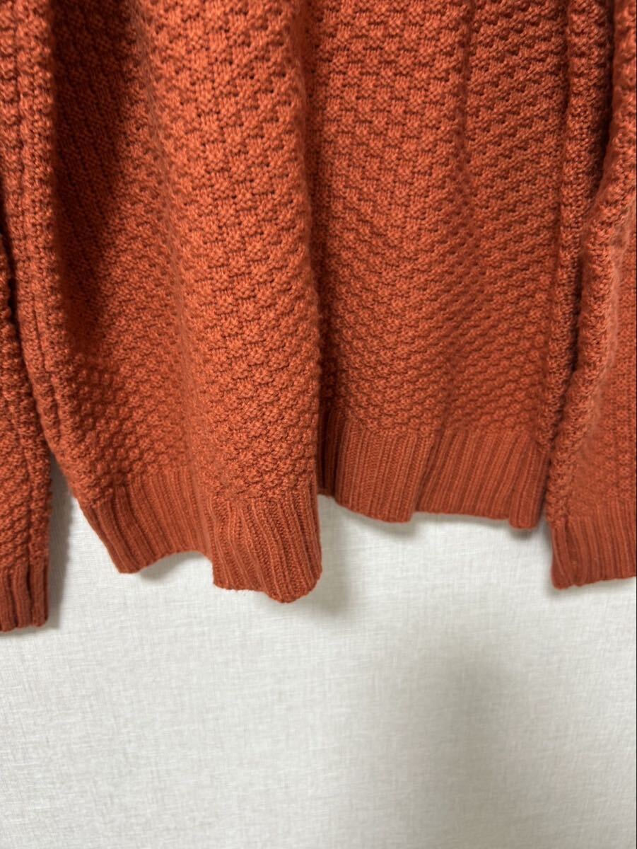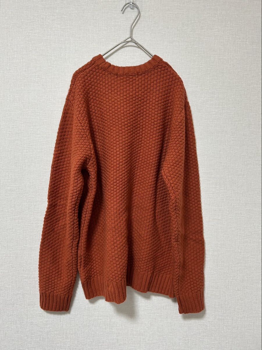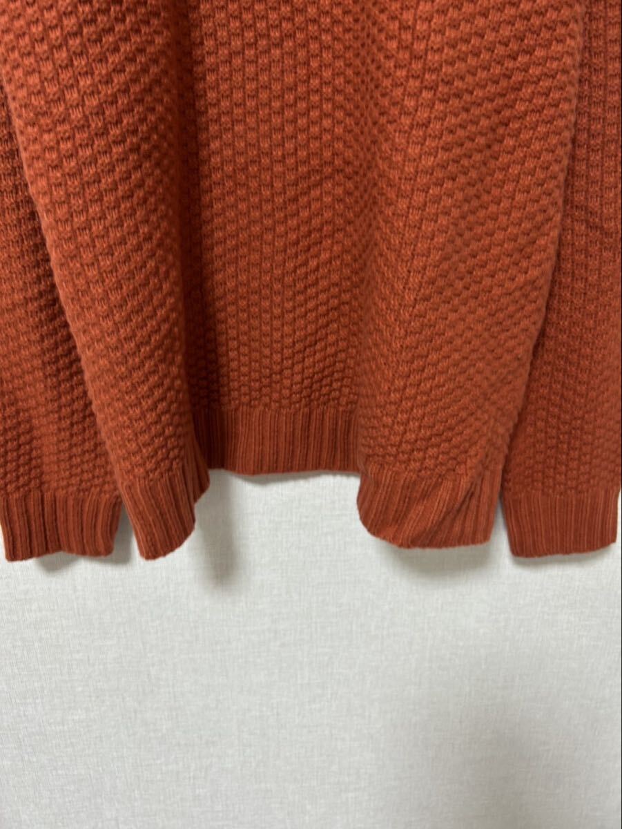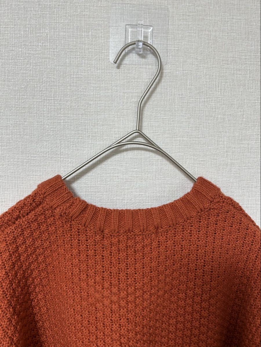 オレンジの編み込みデザイン、クルーネックのニットセーター。