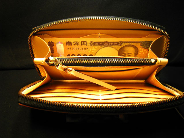内部は、札入れ 2 小銭入れ 1  カード入れ6枚×2、小銭入れ両側に1枚づつとなっています。