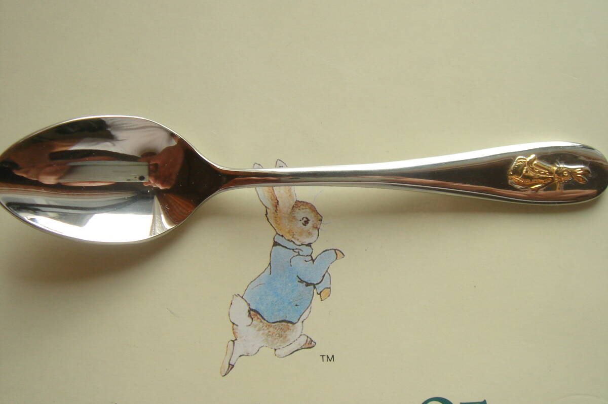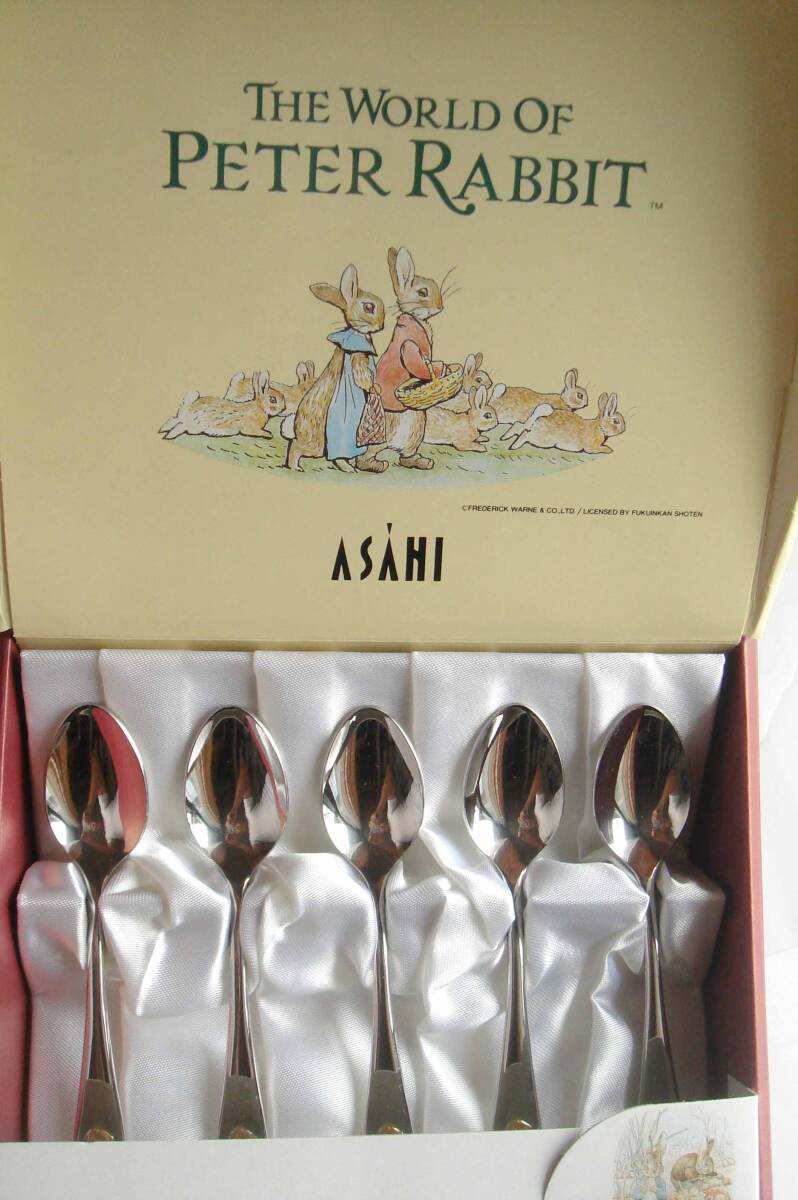 ピーターラビット スプーン5本 18-10の刻印があります。長期保管品のため箱に汚れや傷があります。