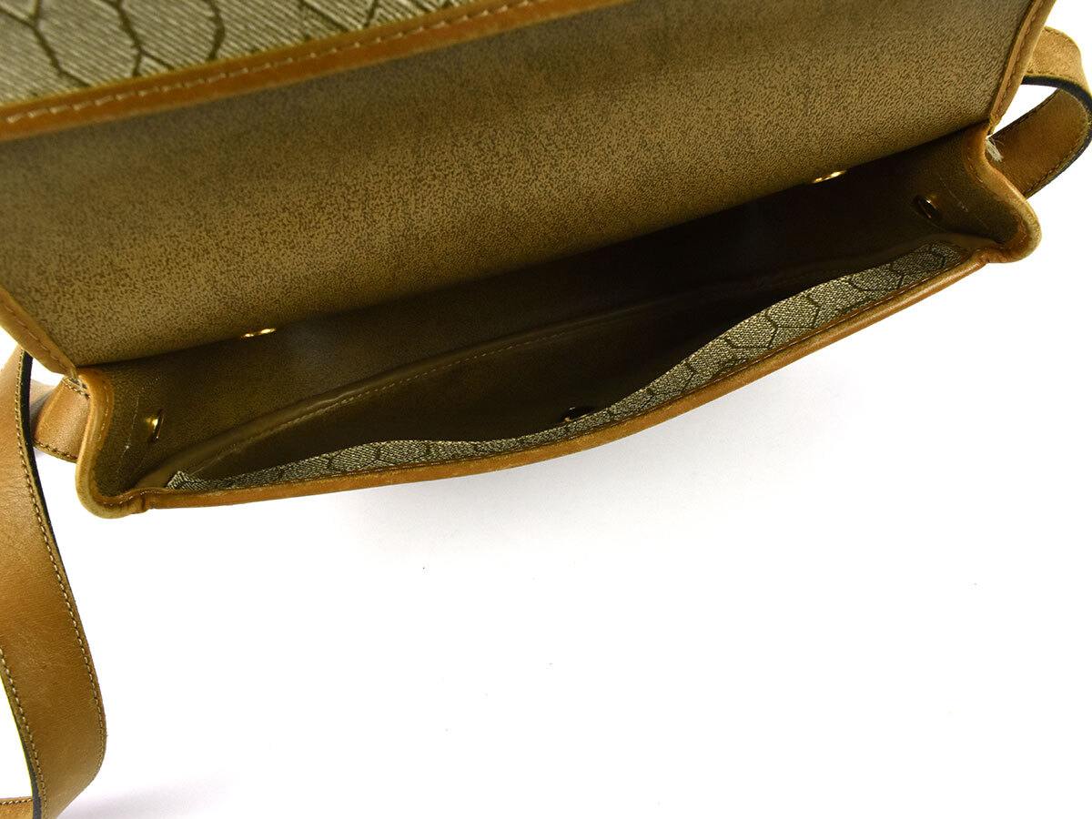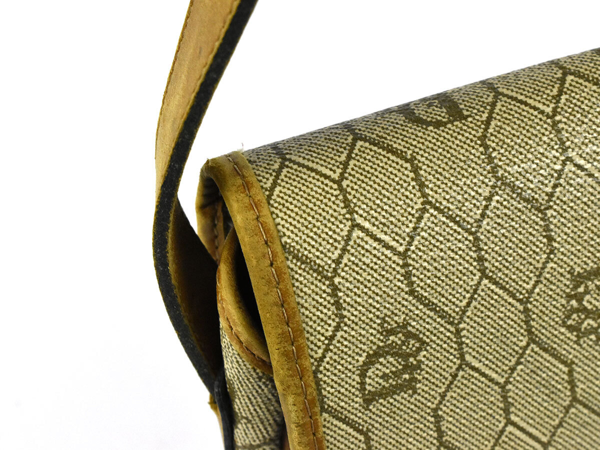 | 全体にヨレ、外側レザー全体的にスレ・剥がれ、ショルダーにシミ・シワ・色ムラ、外側ポケット内側に接着剤剥がれ、外側背面左側・内側角にシミ、金具にキズ・メッキ剥がれがございます。 使用感が強く窺える商品ですので、ご理解の上ご入札をお願いいたします。 | |