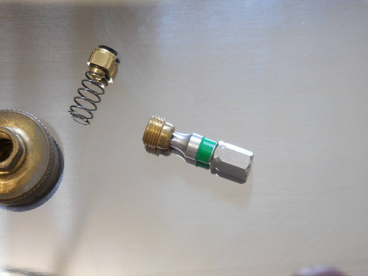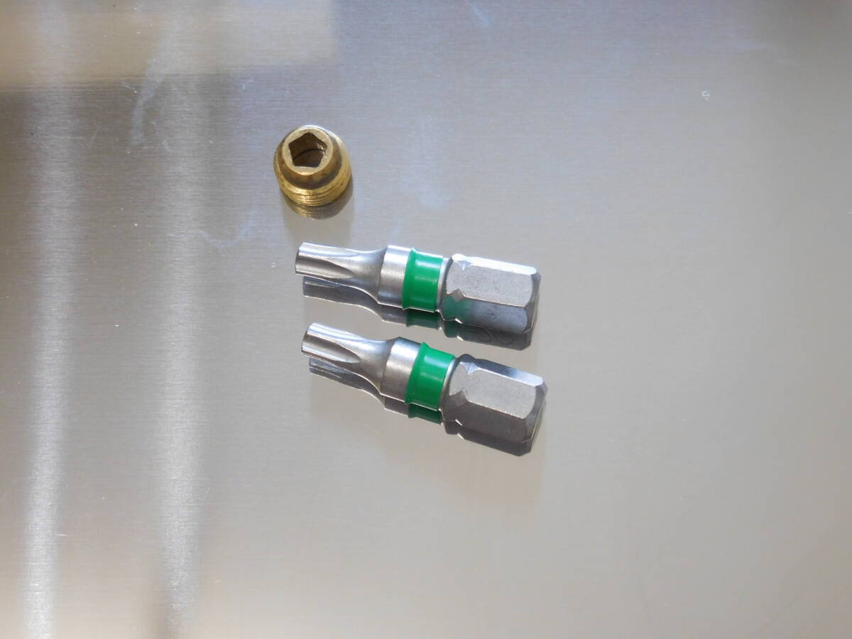 5角形の差込み口がある真鍮製キャップを回す為の 1/4 ビットです。