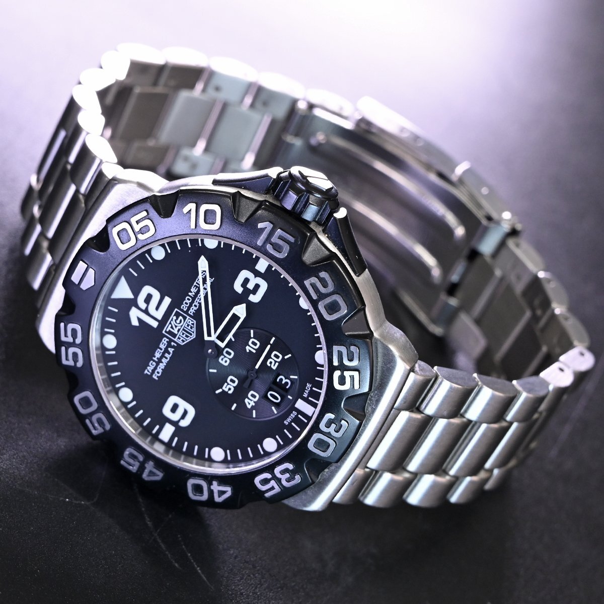 タグ・ホイヤーのグランデイト フォーミュラ1です。 メゾンのコレクションの中でもっともスポーティなモデルが「フォーミュラ1」。 F1をモチーフとしたこちらのモデルはダイヤルの6時位置に大型のスモールセコンドとグランデイトが装備された逸品。 ケースはサテン仕上げのステンレススティール製で、ベゼルにはブラックチタニウム カーバイド コーティングが施され、より精悍な印象を与えてくれます。 ケースバックにはチェッカーフラッグがレリーフされ、F1気分を盛り上げてくれます。 市場でも圧倒的な人気を誇るメゾンのお品なのでお探しの方も非常に多いかと思います。 ※基本動作確認済。 |