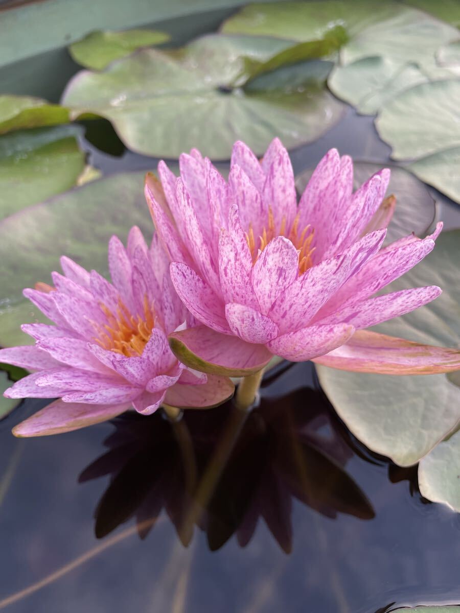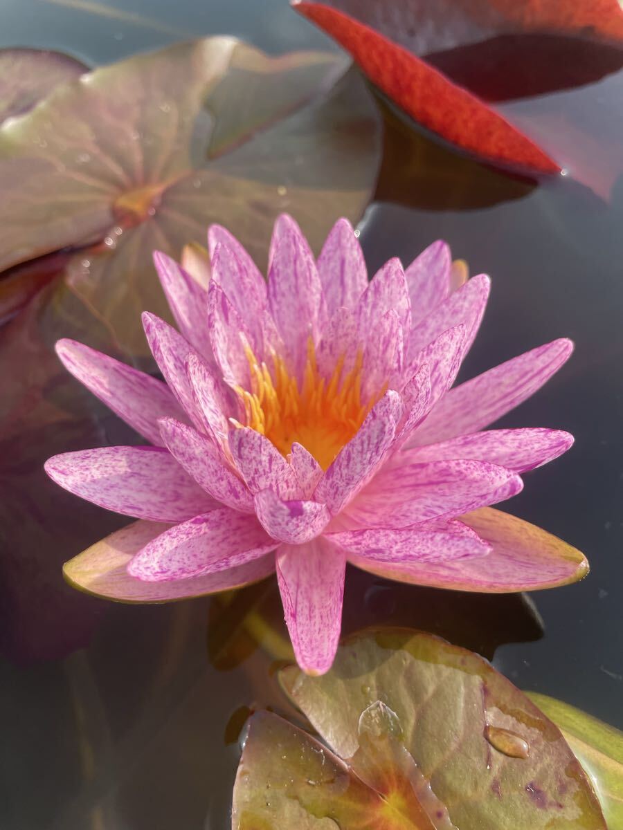 ご覧いただきありがとうございます。亜属間交配睡蓮、スプラッシュのA出品です。紫色の絞り咲きで美しい品種です。シズラーの紫バージョンです。花付きは非常に良く次々と咲かせる品種で、葉は単色の緑葉です。
