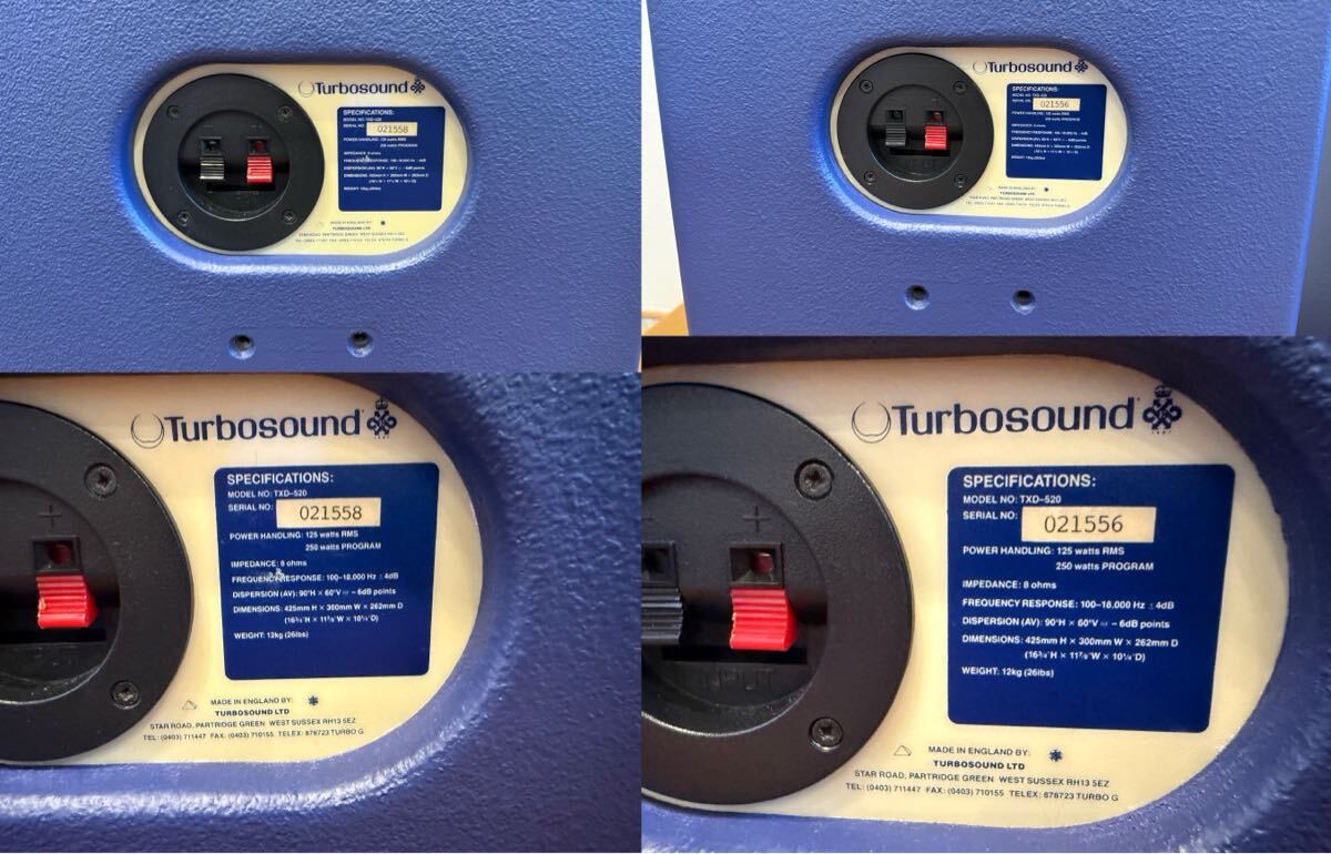 多目的ホールでの常設スピーカーとして使用された物となります。取り外され再塗装されたのか、表面はそれなりにきれいです。ボルト、ネット、スピーカーブラケットもマットブラックに塗装されてます。