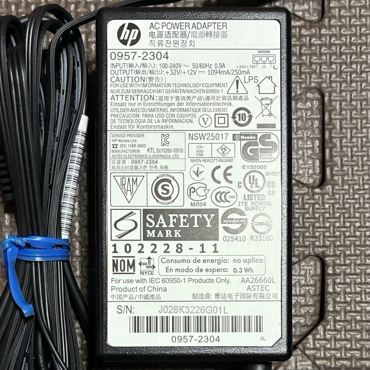 HPのプリンター用 純正ACアダプタとケーブルのセットです。