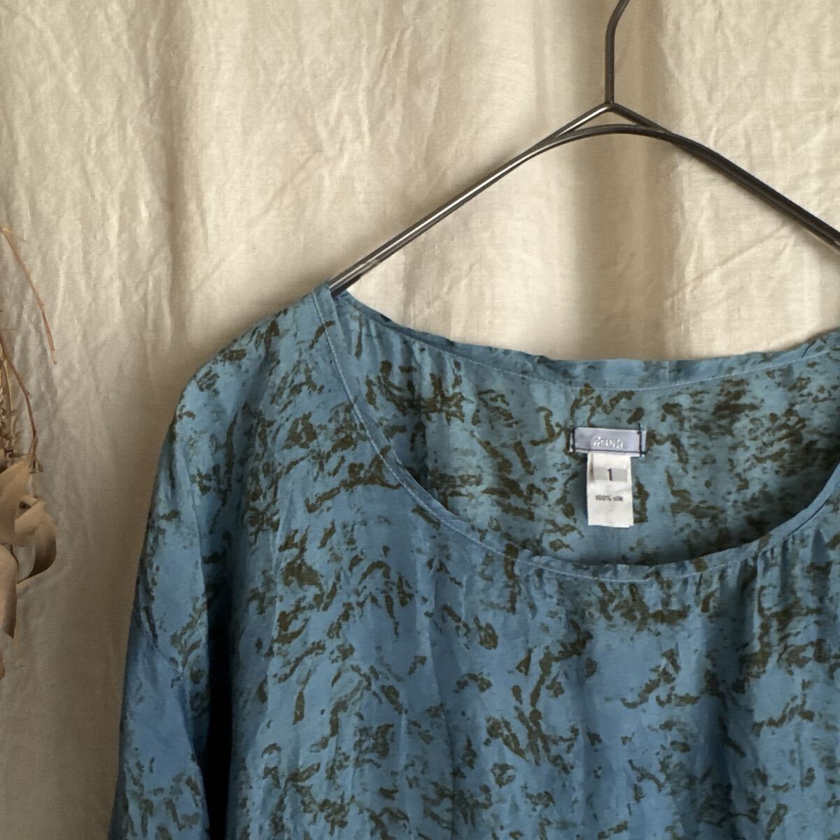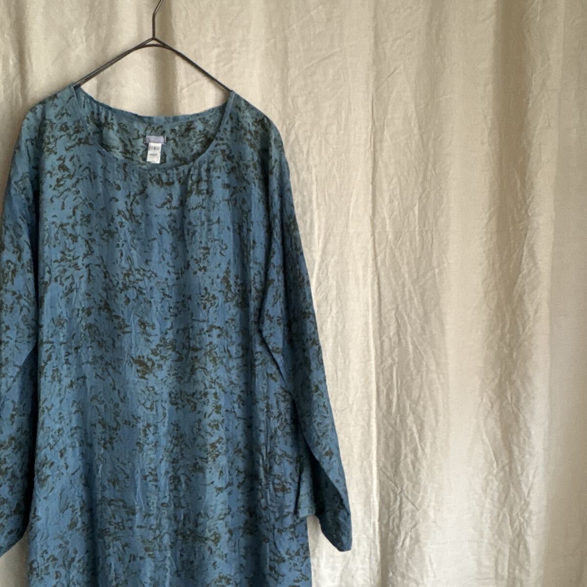 こちらは寺院からの恵みの花をカディシルクに染色した、自然の色が目を惹く素敵なロングチュニジアンチュニック。