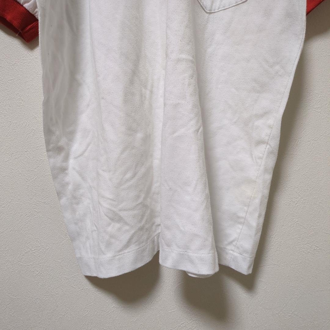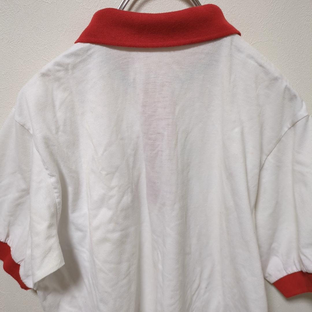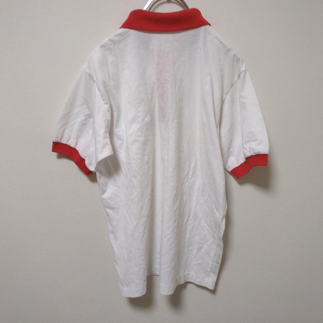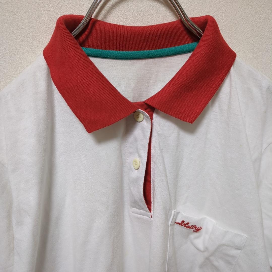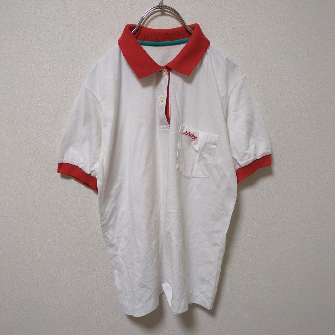 ポロシャツ(ONE)半袖*配色*胸ポケット*英字刺繍*トップス*レディース*白赤